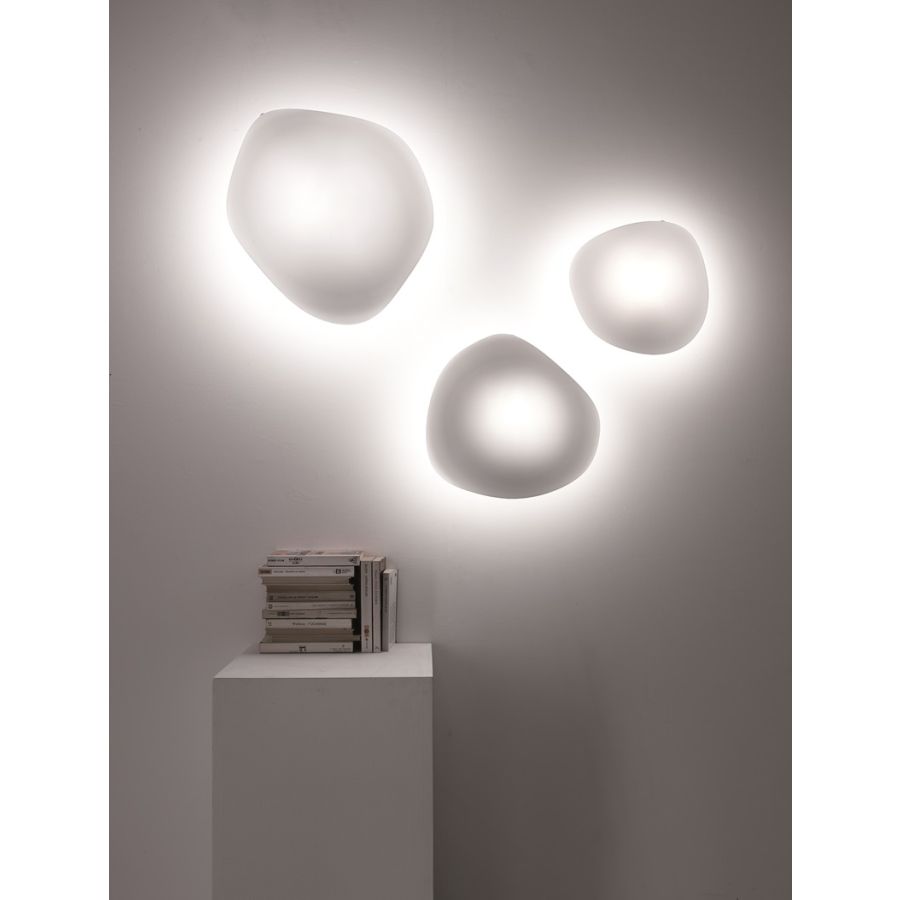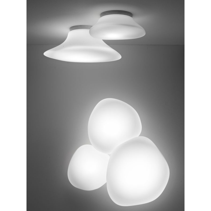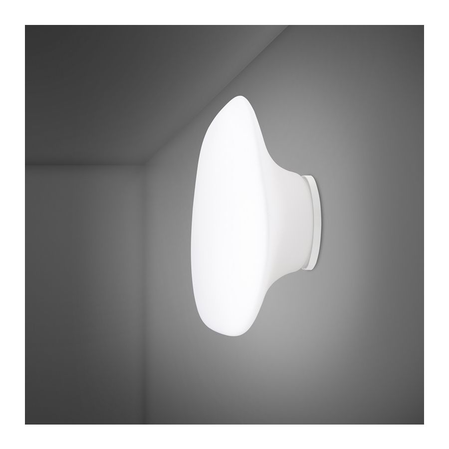 Lampa ścienna i sufitowa Lumi Mycena jest dostępna w trzech różnych rozmiarach z białym, dmuchanym dyfuzorem ze szkła. Jej bardzo wyszukany kształt sprawia, że nadaje się do przestrzeni potrzebujących charakteru i które należy uczynić wyjątkowymi. Może być także instalowana w grupach składających się z kilku lamp, aby tworzyć bardzo spektakularne i imponujące kompozycje świetlne.