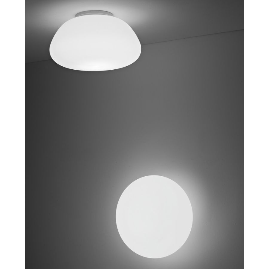 Lampa ścienna i sufitowa Lumi Poga posiada dyfuzor z białego dmuchanego szkła z oprawkami na energooszczędne żarówki halogenowe lub zintegrowane LED. Jest idealna do części dziennej, łazienki, przedpokoju lub pomieszczeń gospodarczych domu, ale także do gustownego i eleganckiego wyposażenia miejsc pracy czy przestrzeni publicznych.