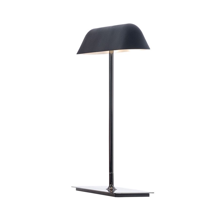 Lampa Butterfly czerpie inspirację z ponadczasowej elegancji tradycyjnych lamp biurkowych do czytania, spotykanych w historycznych wnętrzach, takich jak kancelarie notariuszy czy adwokatów, z okresu wczesnych etapów elektrycznego oświetlenia. Wykonana starannie z wytrzymałego żelaza pokrytego czarnym chromem, posiada wyrafinowany dyfuzor z pyłu marmurowego, dostępny w różnych wykończeniach, w tym w kolorze białym, zielonym lub czarnym.