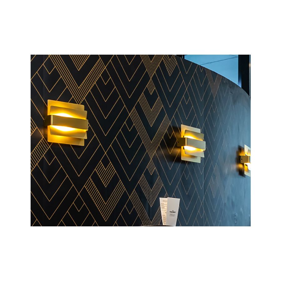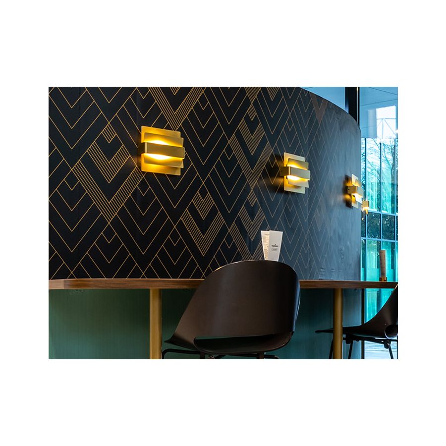 Kinkiety przeznaczone do użytku domowego i kontraktowego, wykonane z metalowej ramy i posiadające dwa klosze w formie skrzydeł, tworząc spektakularny efekt oświetlenia pośredniego. Wykończenie może być w kolorze białym, mosiężnym, brązowym lub cynowym. Źródłem światła jest zintegrowany LED.