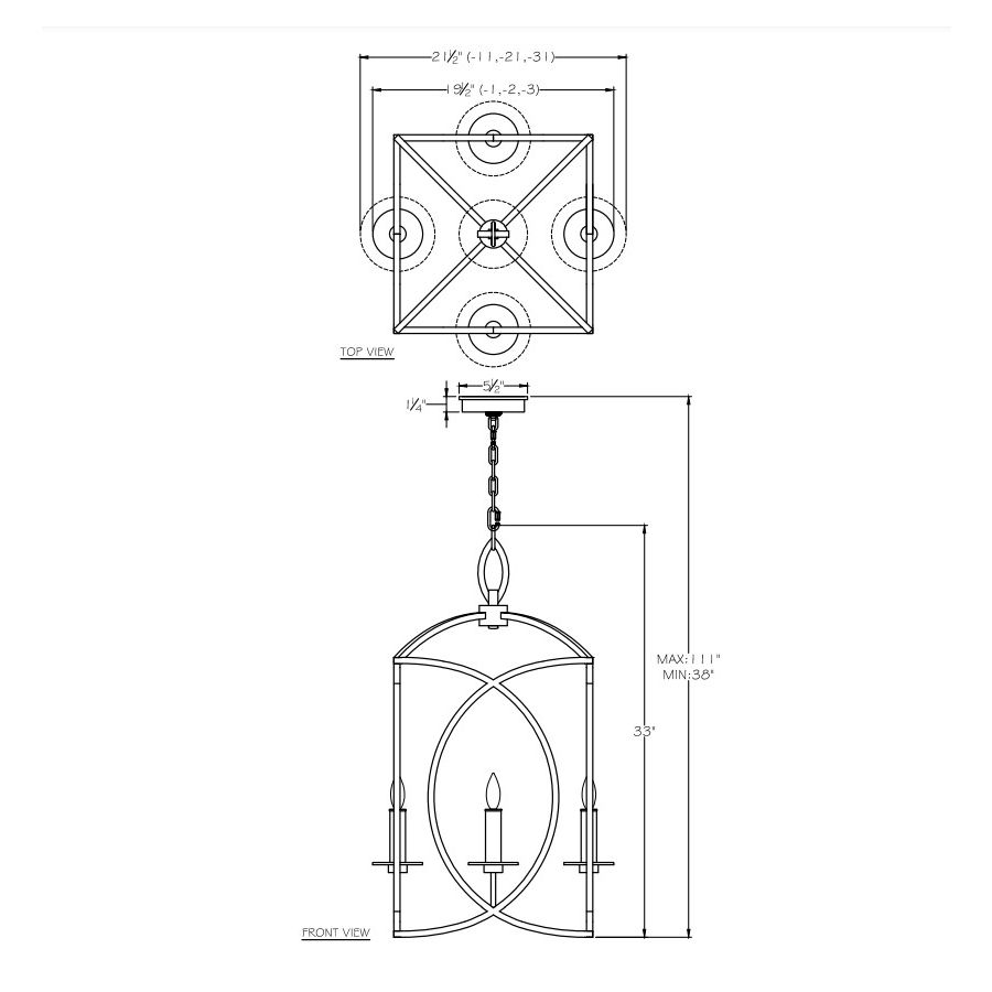 Cienfuegos 21″ Square Chandelier is available in 5 models (Finish / Model number):
