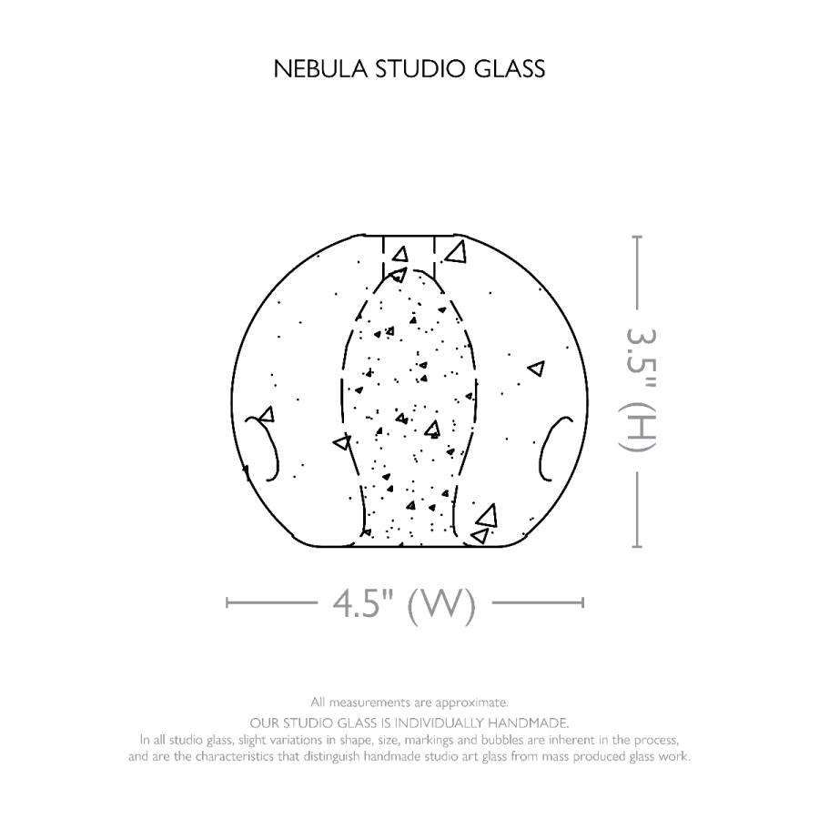 The Nebula creates the essence of cosmos through hand forming of optic impressions while infusing the crystal with the reflective quality dichroic glass. Each piece is as individual as the rainbows of light from the galaxies above. Silver leaf canopy. Also available in gold-toned silver leaf with choice of additional crystal glass options. For 220V, item is configured with halogen G4 bulb(s).