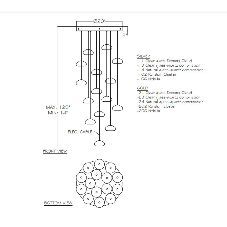 TBorn from the core elements of Earth, inspired by the beauty of nature, and created by the sculpting hands of master glass artists. A collection of precious drop lights as wondrous and unique as nature itself. Available in standard silver leaf or gold-toned silver leaf finish, and your choice of five hand-blown glass options. Custom finishes and custom sizes available on all canopies.