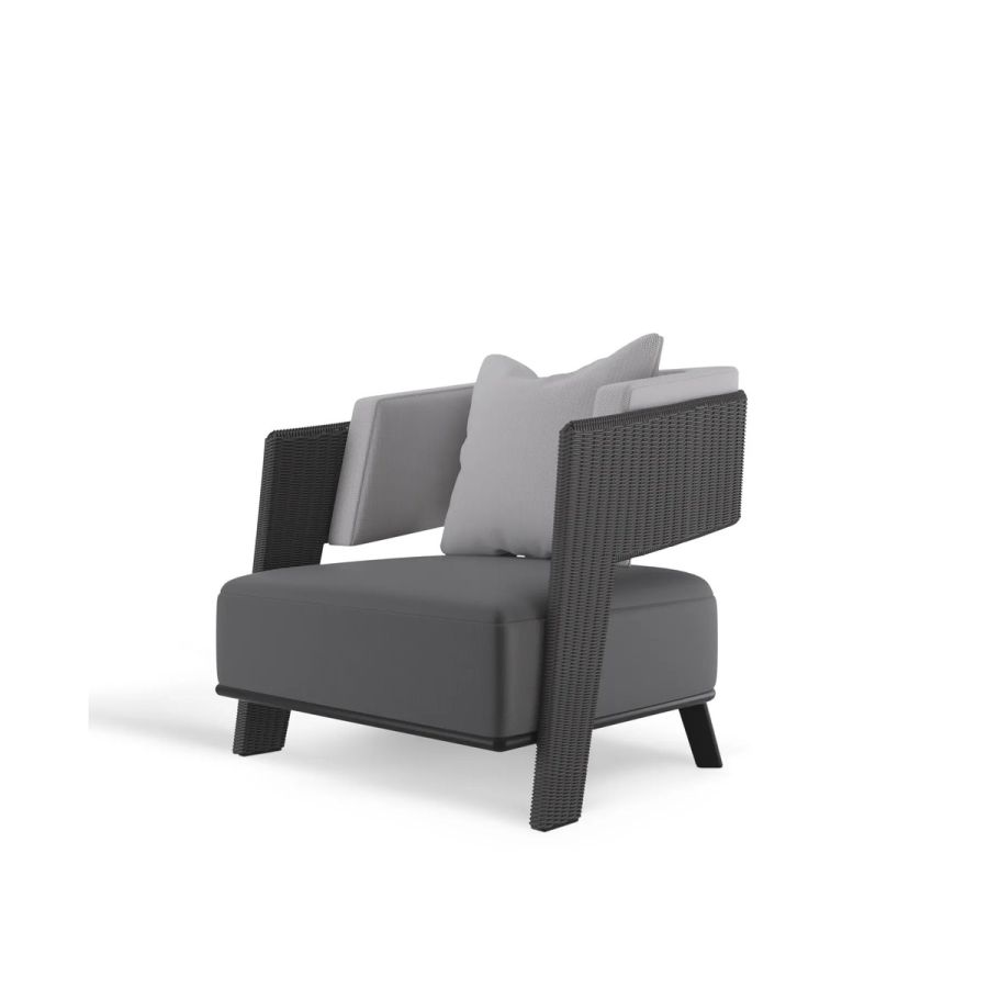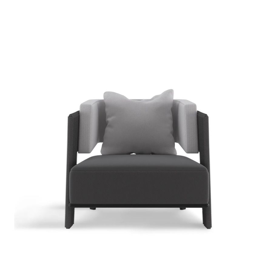 Relax in our Galea Grey Armchair under the energizing sun! Brought to life by luxxu with a combination of traditional weaving techniques from Indonesia and Portuguese exquisite Metal work, this is a durable and resistant outdoor piece. Made with Stainless Steel, Powder Coating & Synthetic Fiber this elegant chair with an Anthracite Rope Color is perfect for a relaxed yet luxurious outdoor.