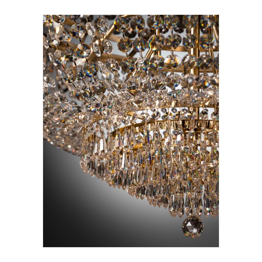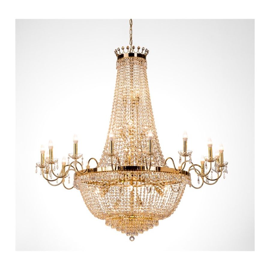 This crystal chandelier is a classic and elegant choice, perfect for adding a touch of luxury to your room. It features 16 external lights and 18 internal lights, providing a warm and welcoming light that fills the room. The crystal design reflects the light so as to illuminate the environment with style. Ideal for the dining room, entrance or living room, this chandelier will create an atmosphere of luxury in any home.