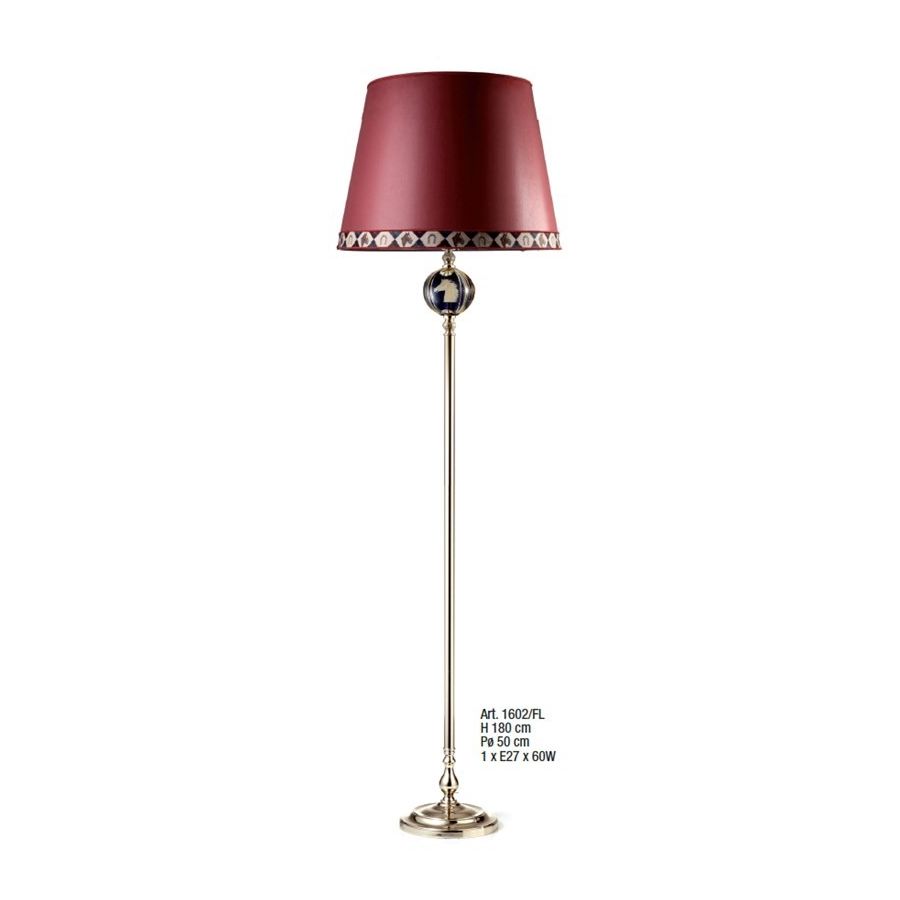Floor lamp with crystal ball with lampshade. Lighting item that diffuses the light with great effect in the surrounding environement creating a warm and welcoming atmosphere.