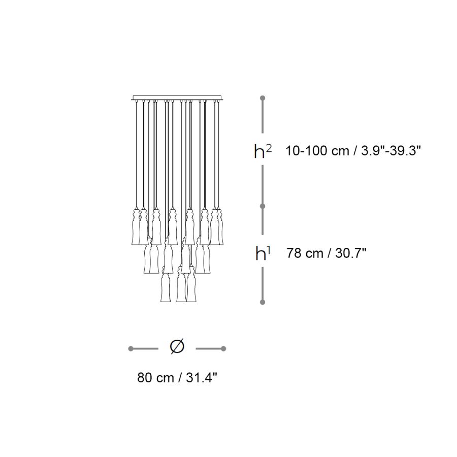 Dimensions (HxWxD) cm.: max 178 (H1/78) x 80 x 80 / inch.: max 70" (H1/30.7") x 31.4" x 31.4"