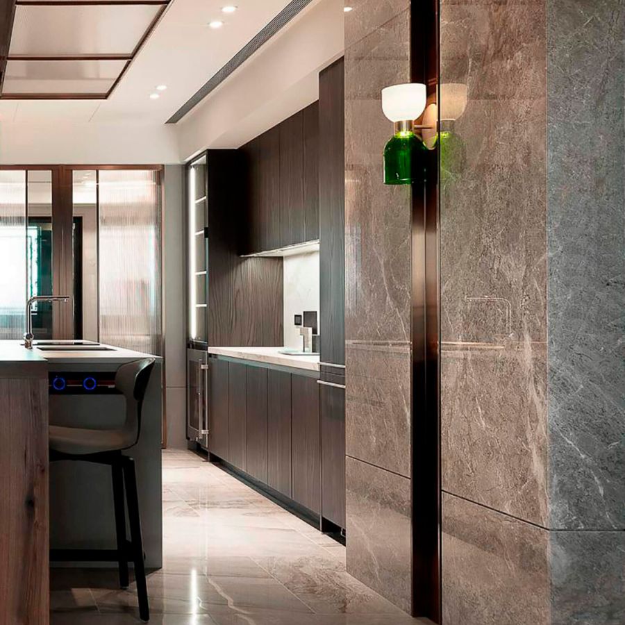 The Caterina collection is made of brushed brass, green and opal glass. It offers versatile solutions able to fully meet the needs of commercial spaces and hospitality, both to find a perfect location in residential environments thanks to the double light emission.