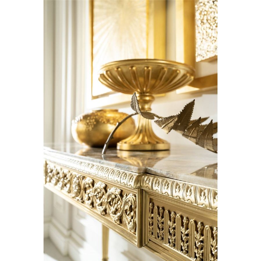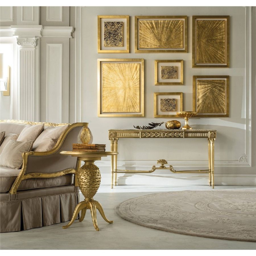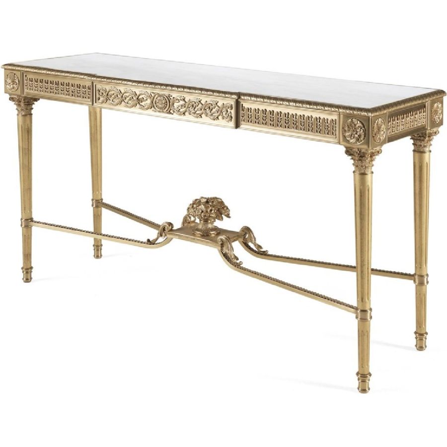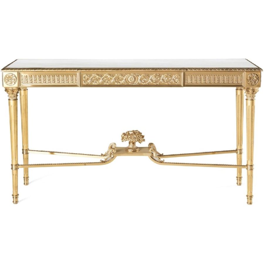 Perfect expression of manual and artistic skill, Shogun is made of brass with lost-wax cast brass details. The piece of furniture is characterized by finely carved legs with gold finishing and a cross that ends with an elegant central cup. The top completes the ensemble adding a touch of elegant refinement.