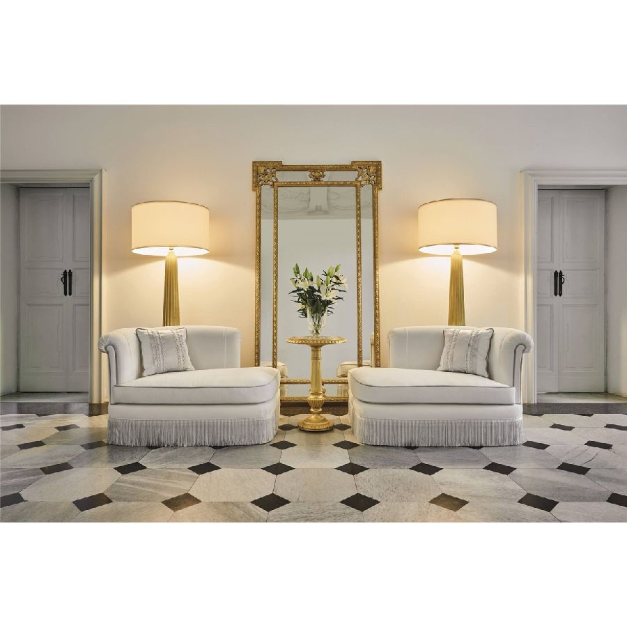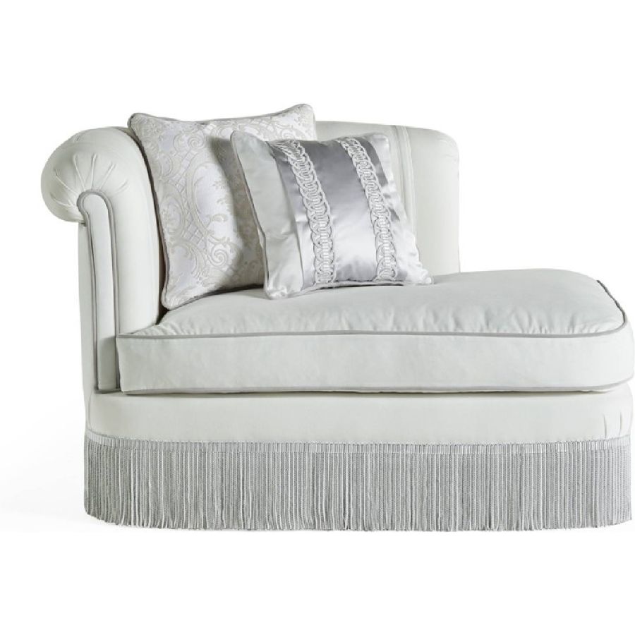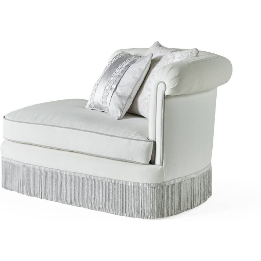 Every Jumbo Collection dormeuse seamlessly blends timeless design with unparalleled craftsmanship. Ivy showcases a relief embroidery on armrest and backrest as a special feature, an attention to detail that is typical of the Jumbo Collection furniture pieces. The double white and grey fringe is another signature element of this statement piece, created to embellish any environment.