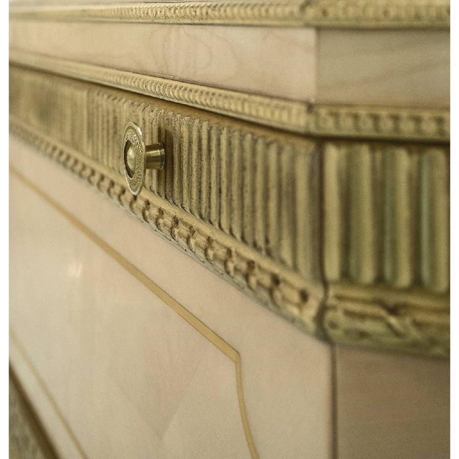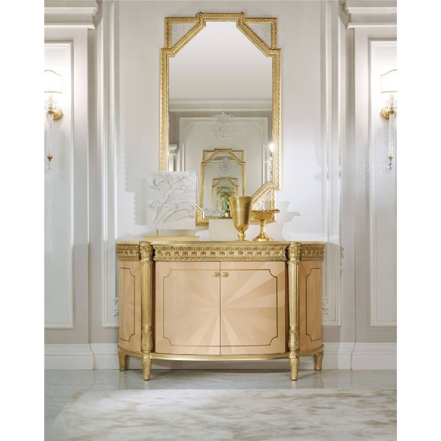 All the splendour of the French style in the Boulevard collection, featuring the presence of hand-made carvings, embellished with gold leaf finishing. The protagonist is fris maple wood, with ray-of-sunshine inlays and brass inserts. Boulevard looks graceful and precious, the expression of a refined and decorative luxury.