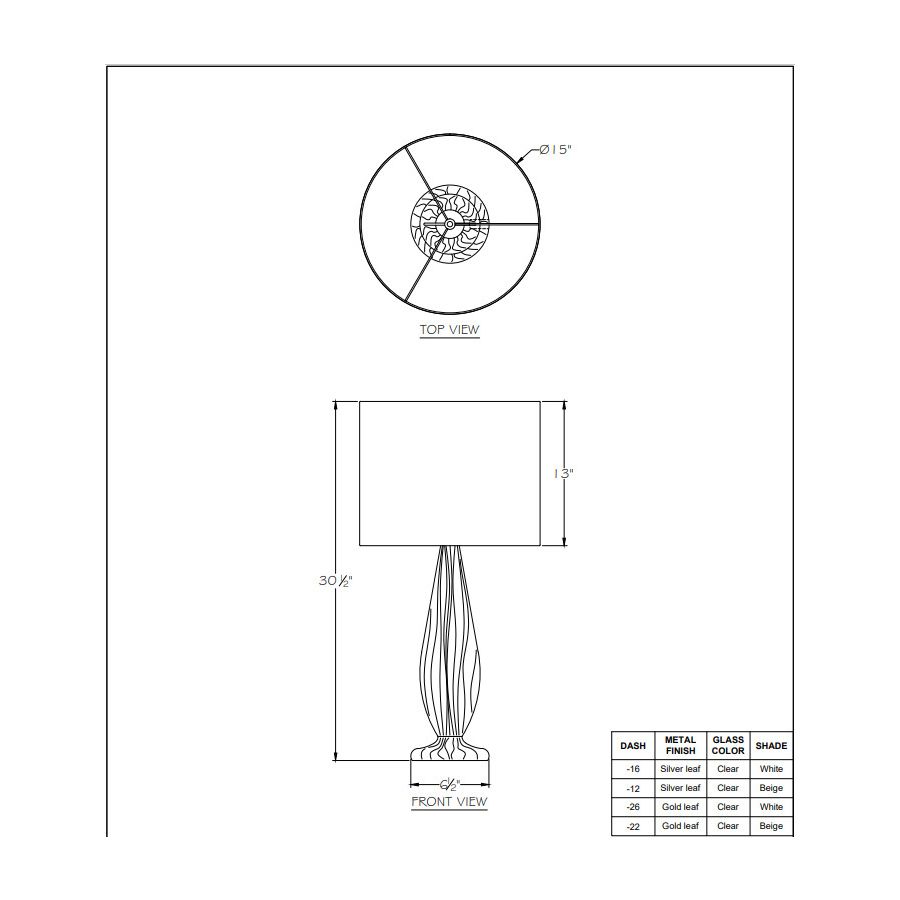 Las Olas 30.5″ Table Lamp is available in 4 models (Finish / Model number):