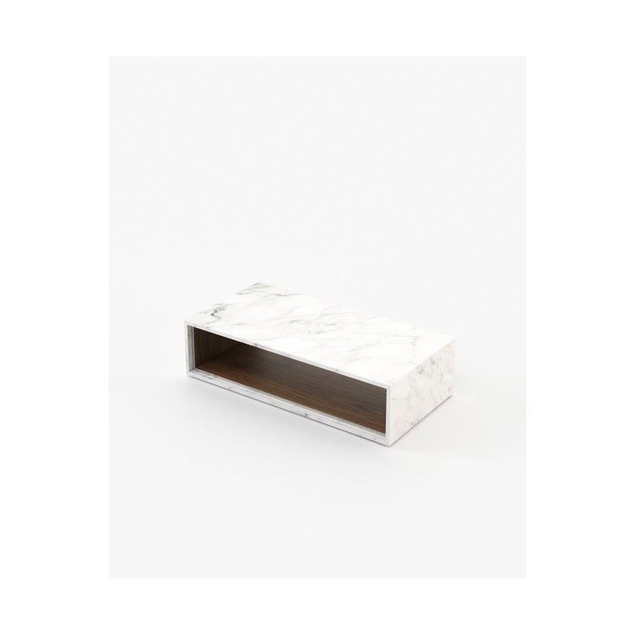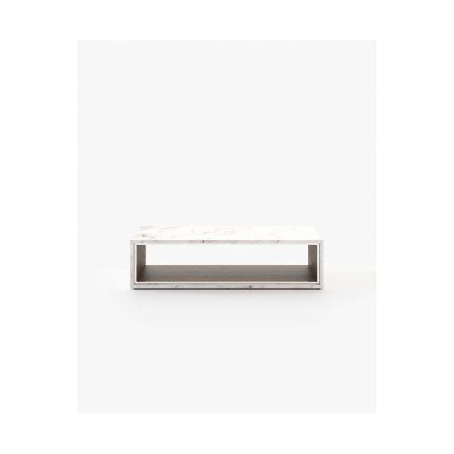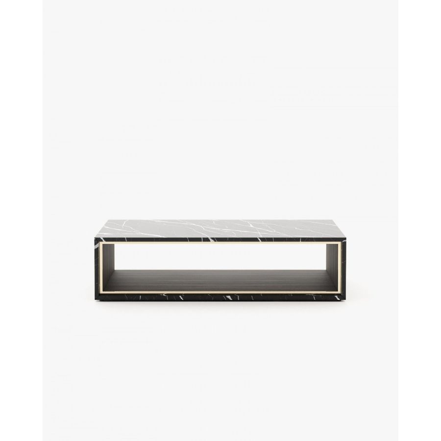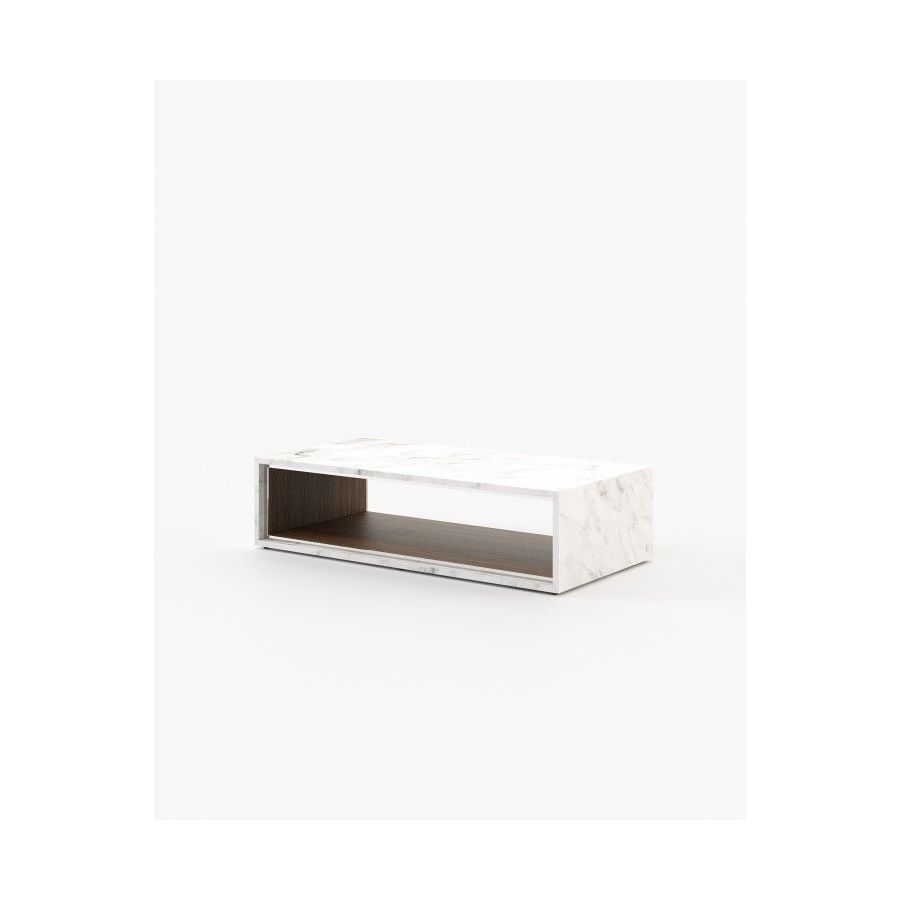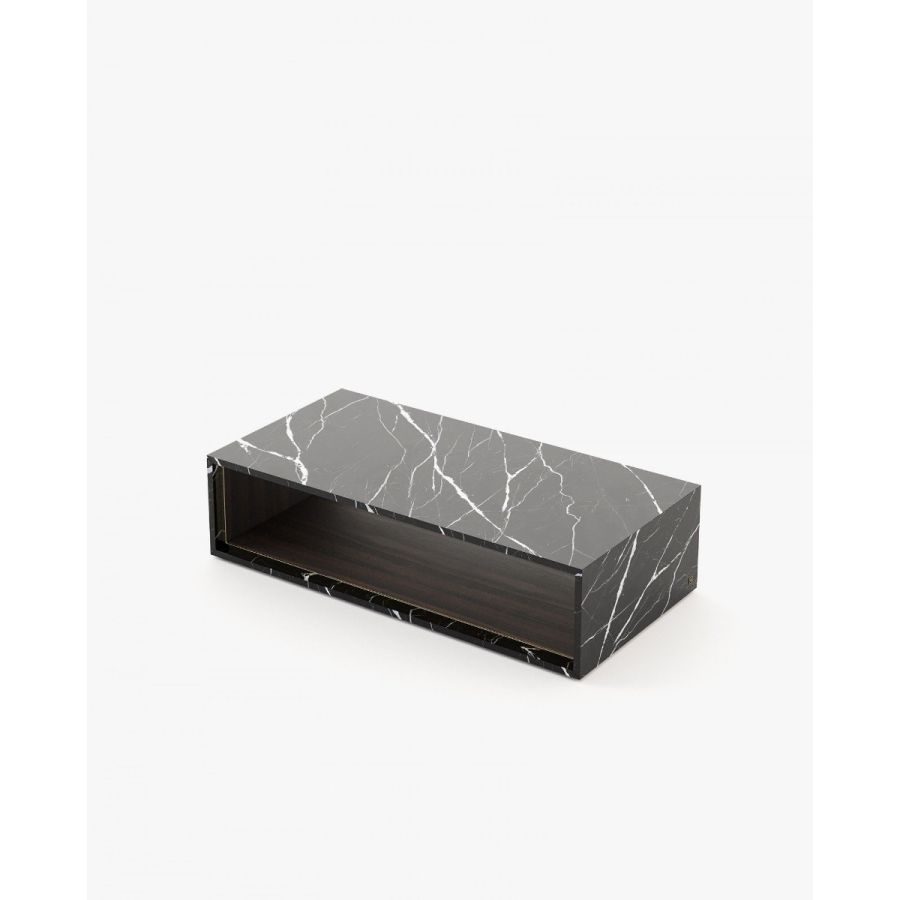The Nilo coffee table is a unique and modern addition to any space, featuring a solid natural marble surface and sturdy wooden or lacquered interior.