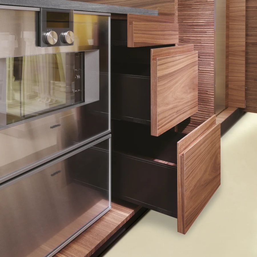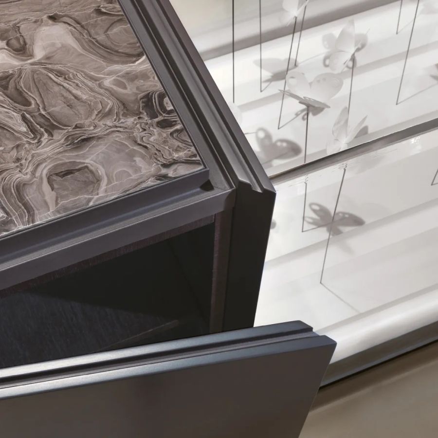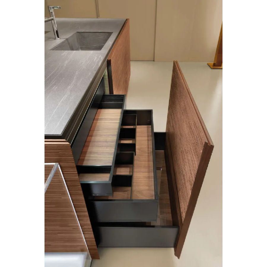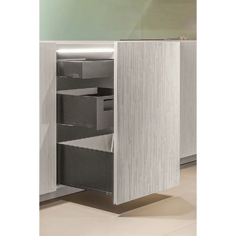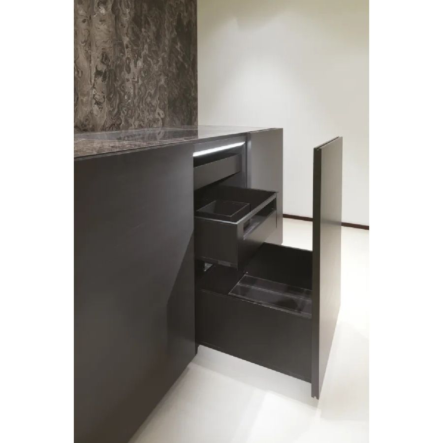 The Bellagio project stands out for its cutting-edge technical and stylistic solutions. The worktop has been reimagined with a completely innovative approach, the storage containers have been expanded for greater capacity, the introduction of LED lighting has optimized the use of the kitchen, and the opening and closing solutions for spaces have revolutionized the concept of kitchen furniture.