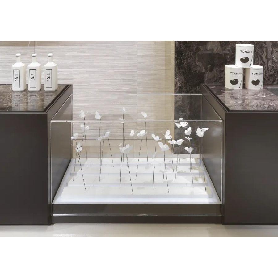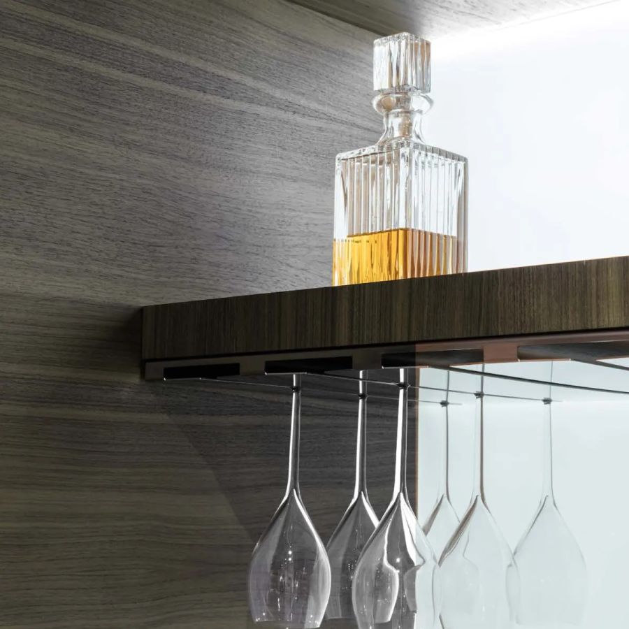 Among the many options, we also mention the possibility of custom-designed, elegant plexiglass display cases illuminated with LED lights and exclusive shelving for wine storage.