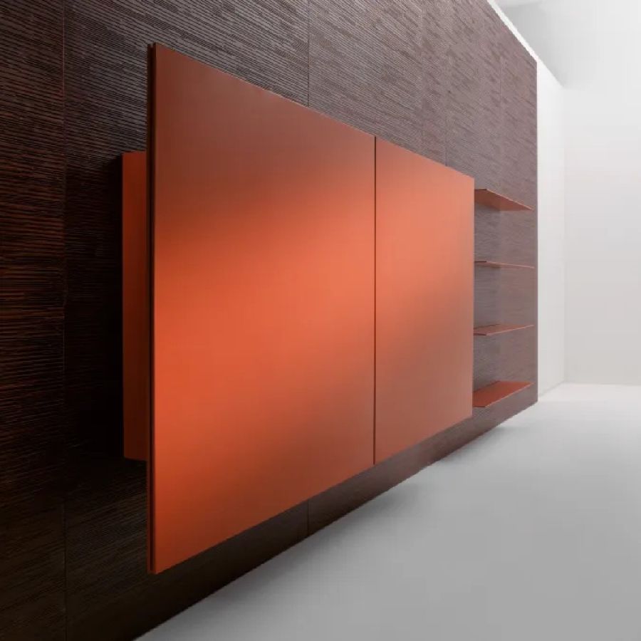 Square wall units available in special dimensions, with veneered structure and protruding hinged door.