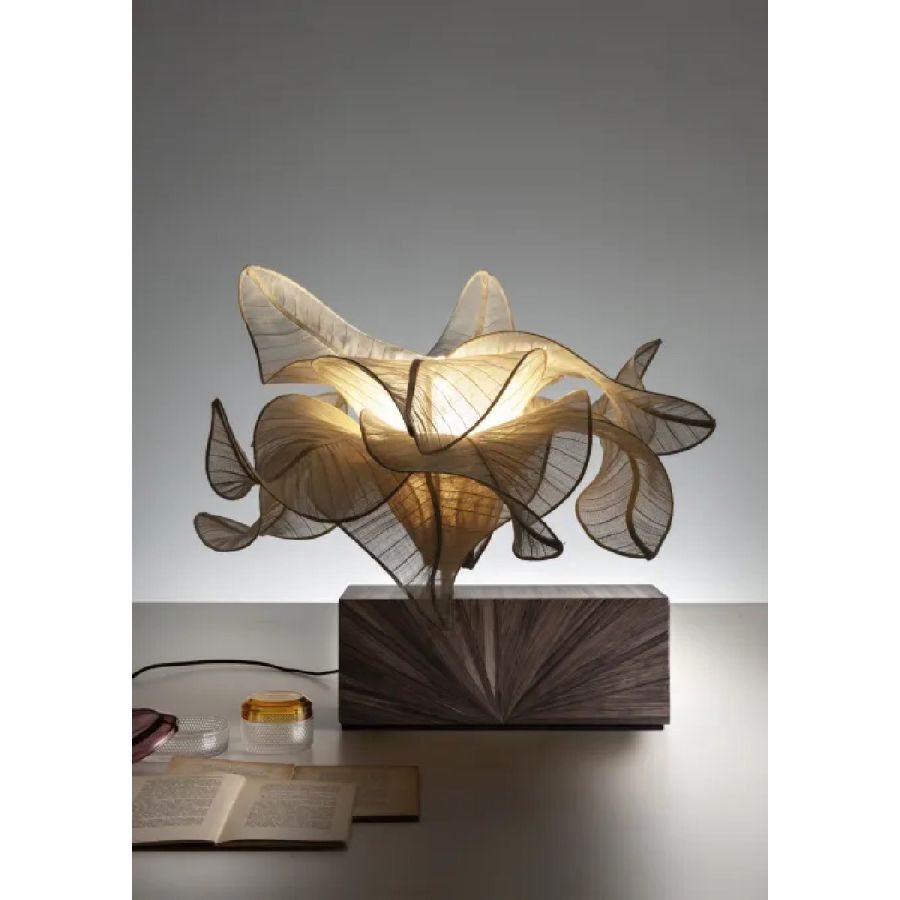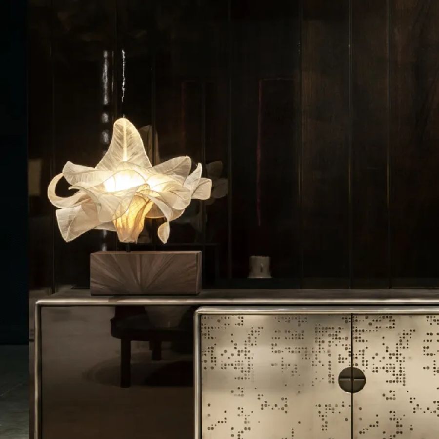 Decorative flower-shaped lampshade in Banaca fiber or minimal lampshade in parchment.