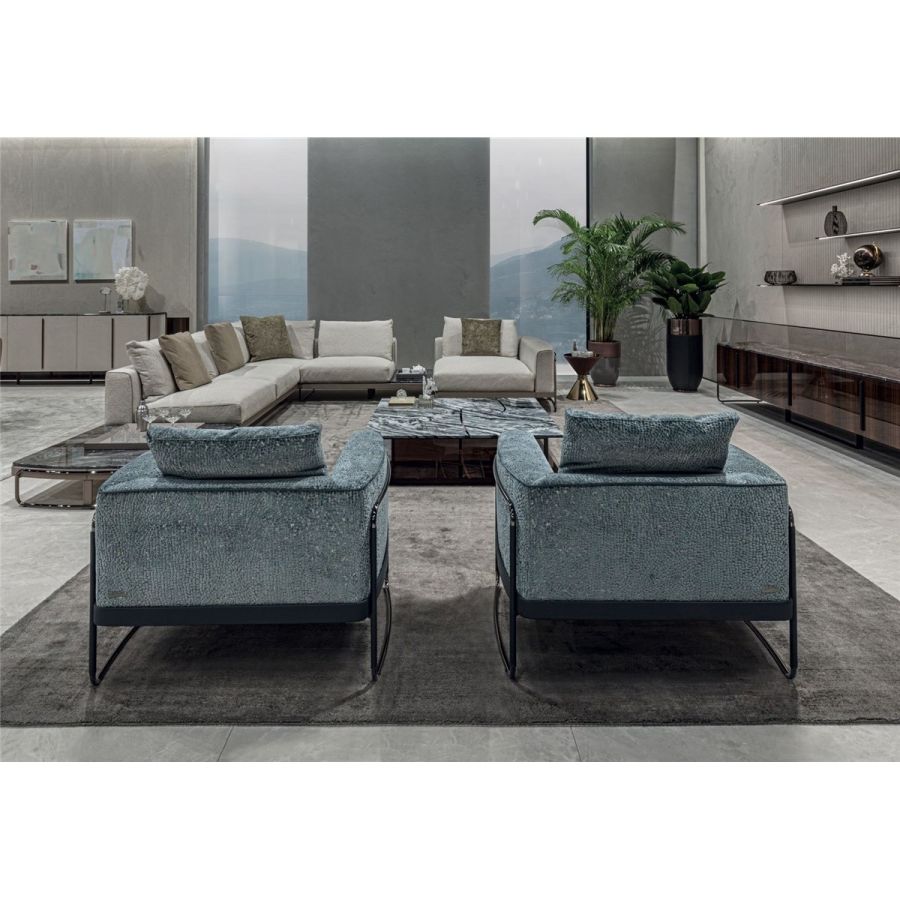 Just like the Edgar sofa, the Megan armchair is all about the very precise, contemporary, minimal style shared by all the Longhi 2023 products designed by Giuseppe Viganò. Its comfy shape picks up on classic lines, the distinguishing features of this architect’s projects.
