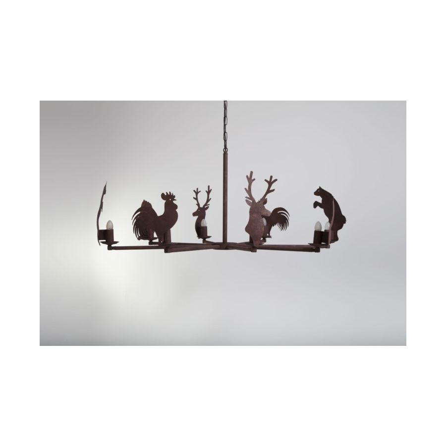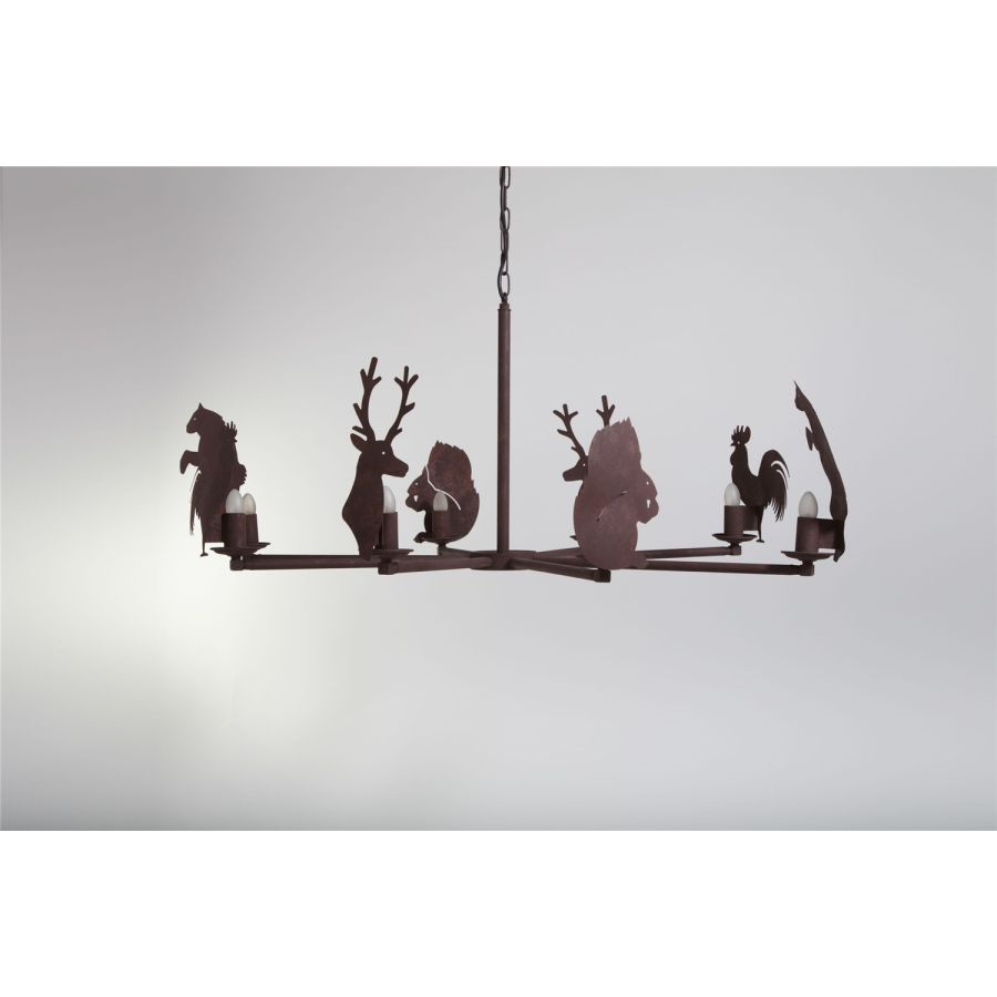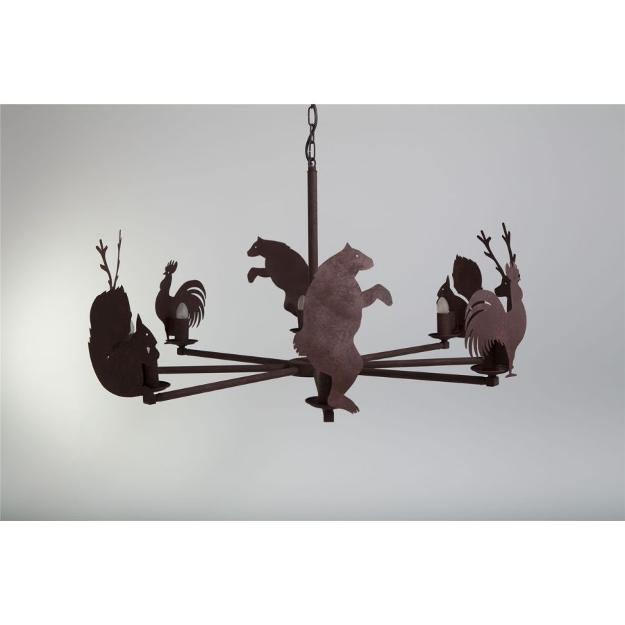 The chandeliers in the Animaux Collection create shadows of bears, deer, roosters or squirrels, a whimsical nod to the French countryside or Alps. Chandelier delivered with chain and ceiling cup.