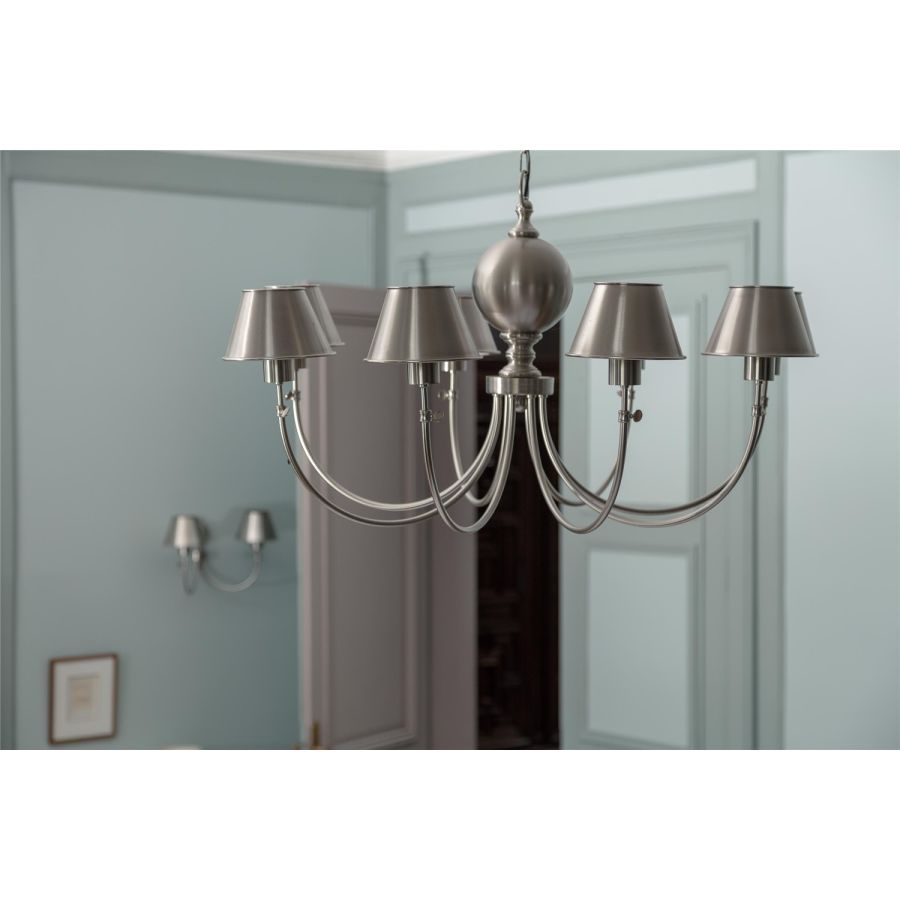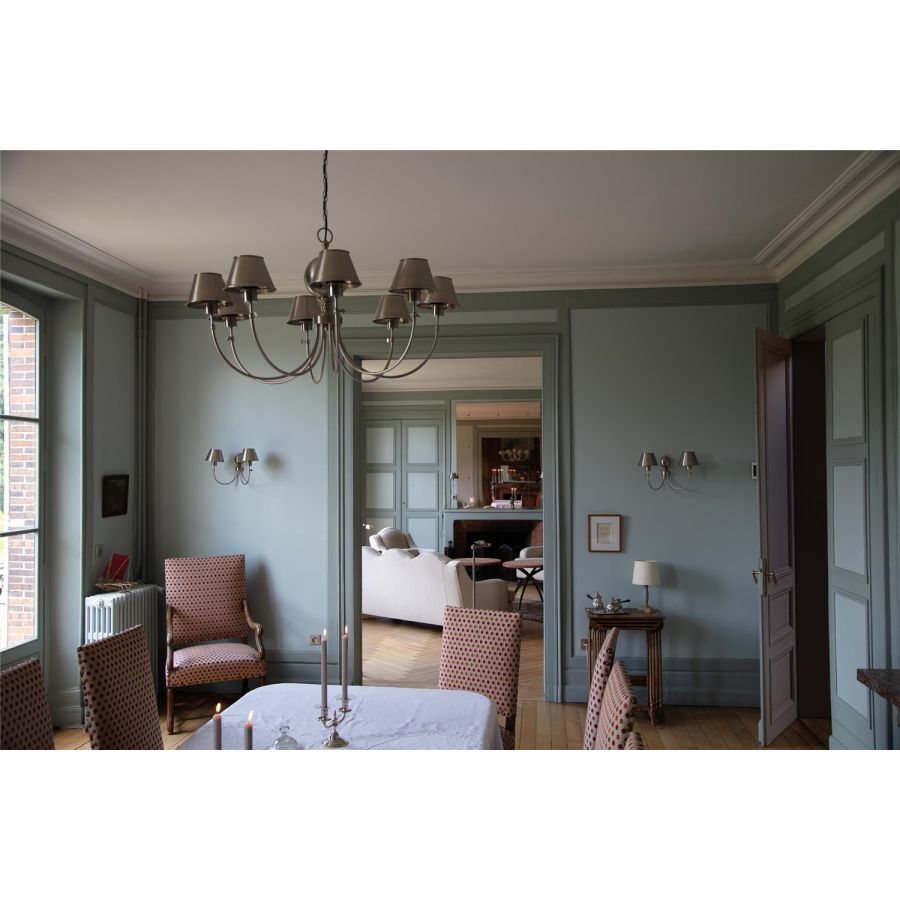 Loosely inspired by Dutch chandeliers, the Bilboquet Collection juxtaposes simple lines with the solidity of the brass or zinc shades. The light is mainly cast downwards for a warm and muted ambiance. Playing with the finish allows you to match it with a classic and elegant décor or a truly contemporary one. Chandelier delivered with chain and ceiling cup.