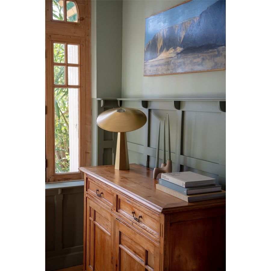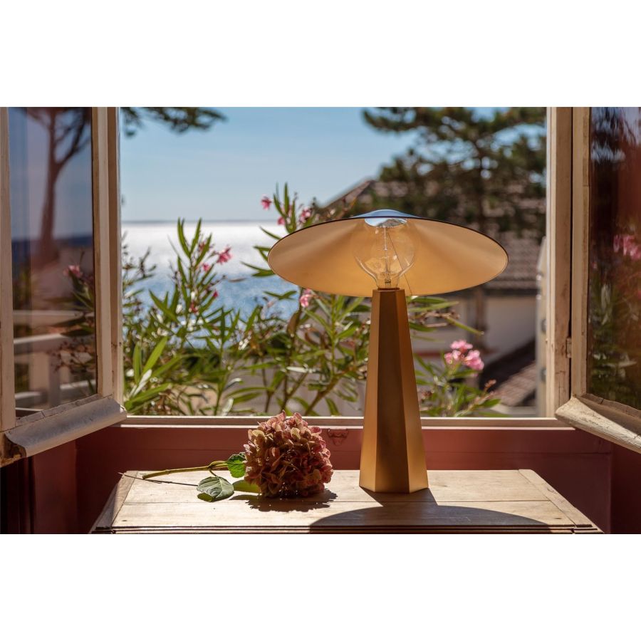 The Octavie lamp is resolutely contemporary. Its hexagonal base is very graphic, and its truly distinctive touch is its lampshade placed directly on its bulb of diameter 120.