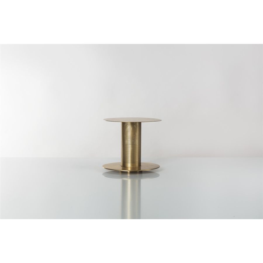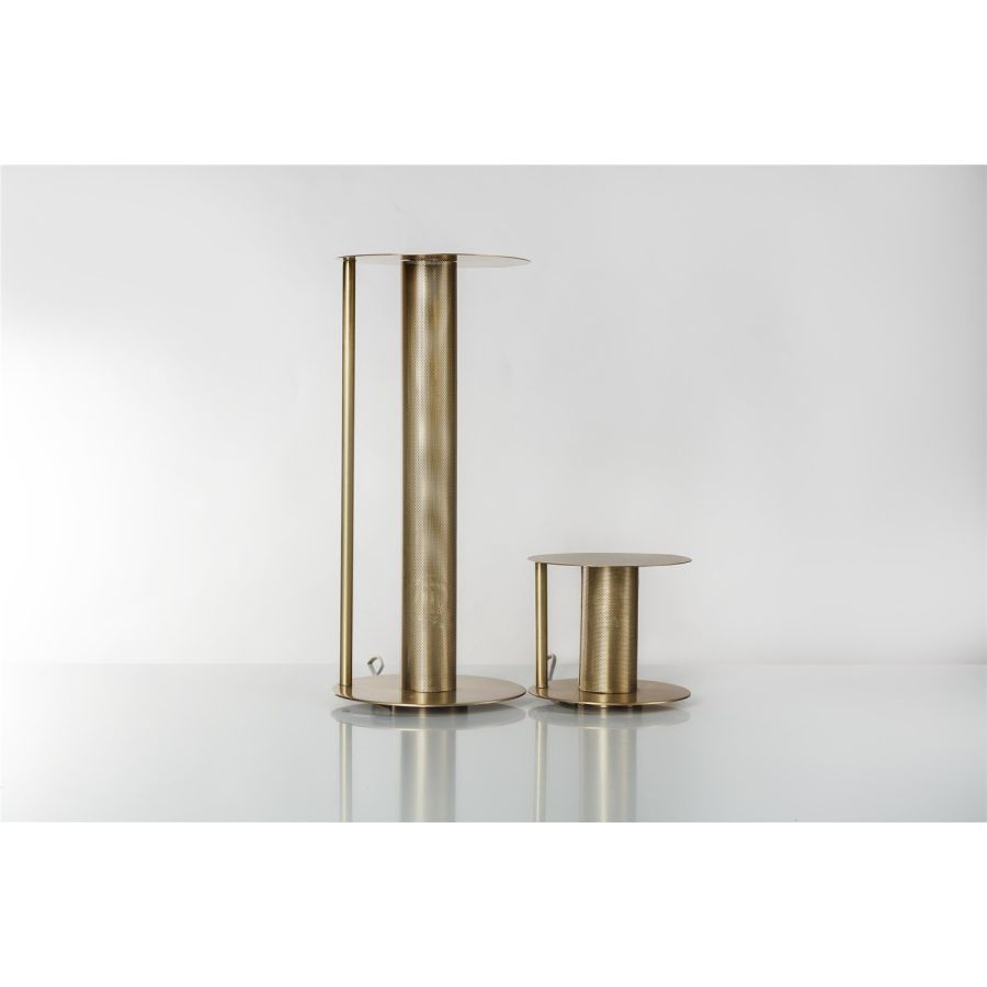 Airiness and warmth are the hallmarks of this collection of table lamps. A delicate dance takes place between circle and the cylinder, between solid brass and micro-perforated brass in the Whisper Collection, which charms with its simple lines and the magical, soft glow it casts.