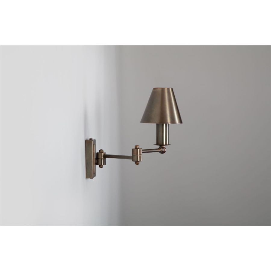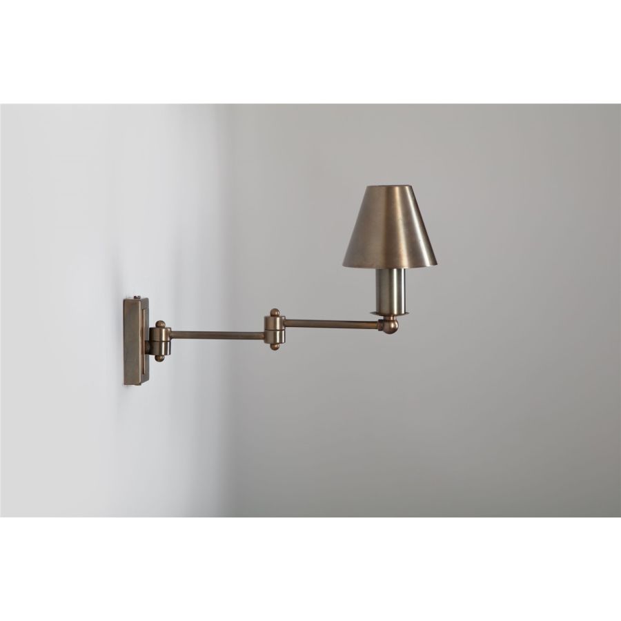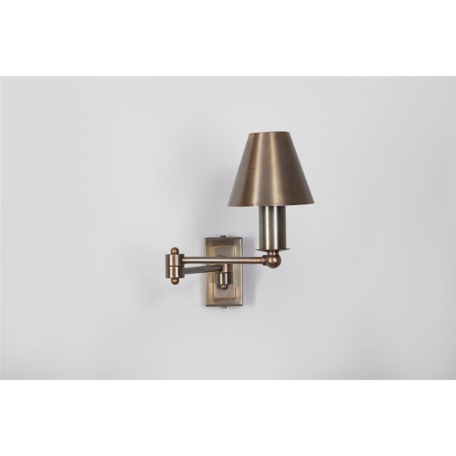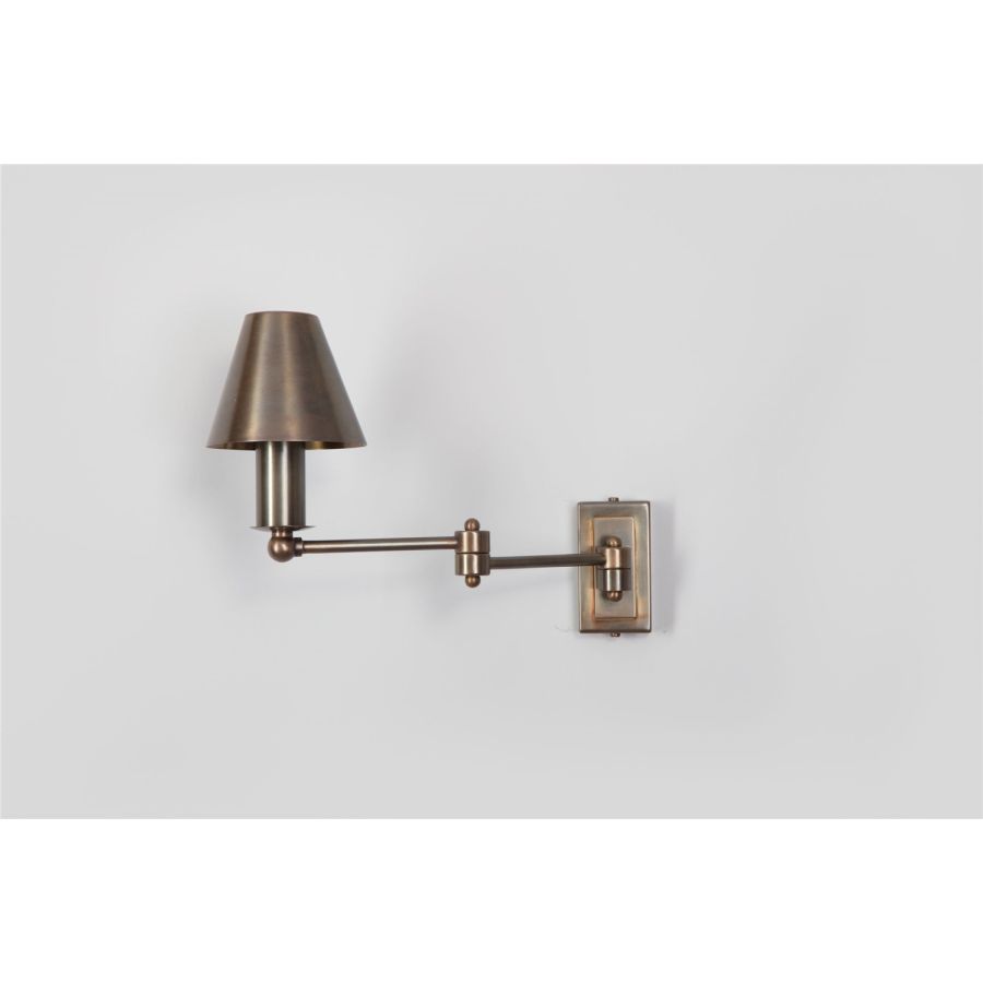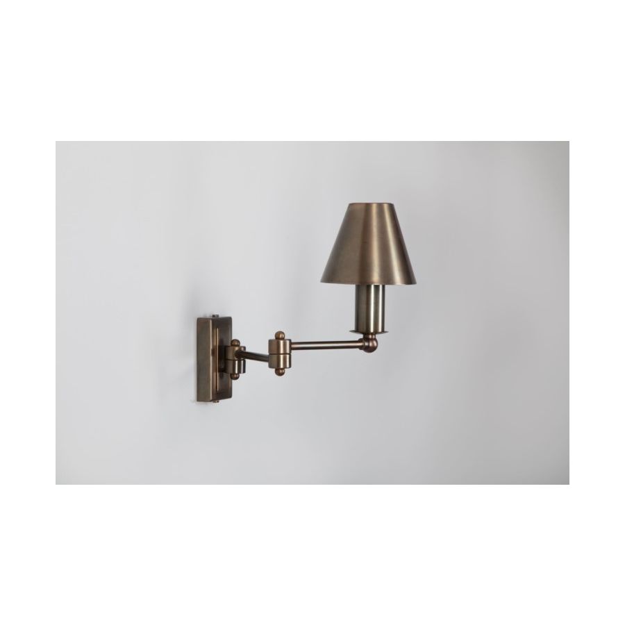 DAlembert is one of the wall lights in the catalogue specially adapted to libraries, the small footprint of the mounting plate allows it to be fitted onto the bookshelf uprights, however narrow they may be and its conical lampshade in brass or zinc will elegantly punctuate the rhythm of the aligned books.