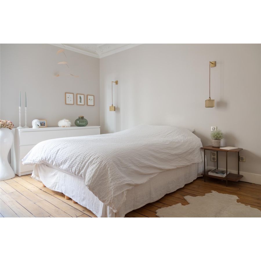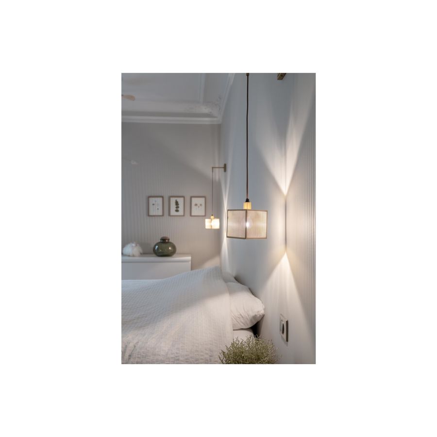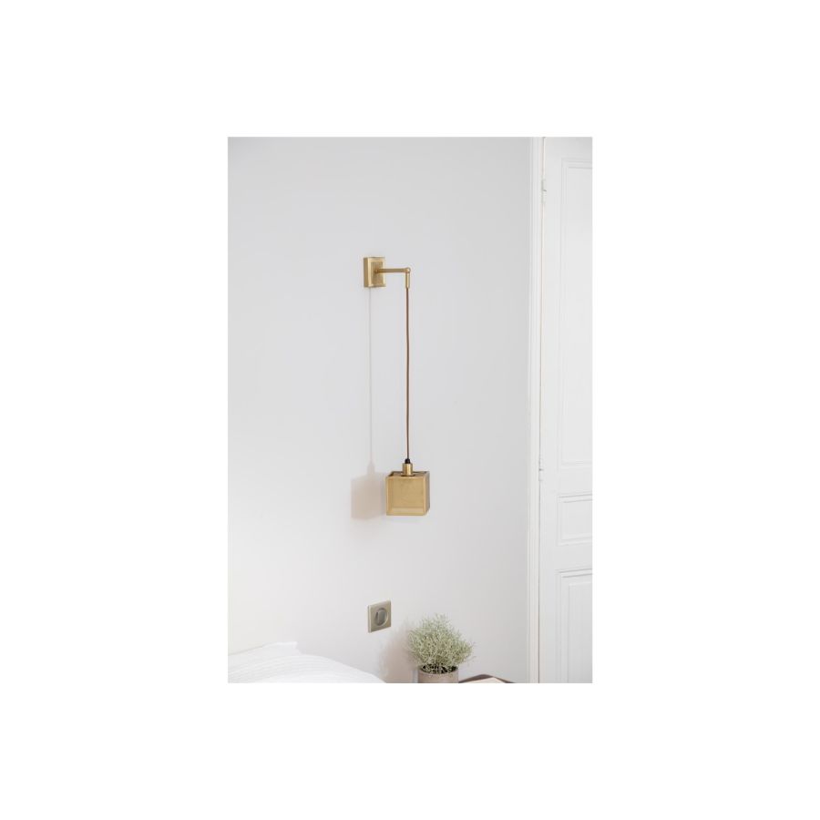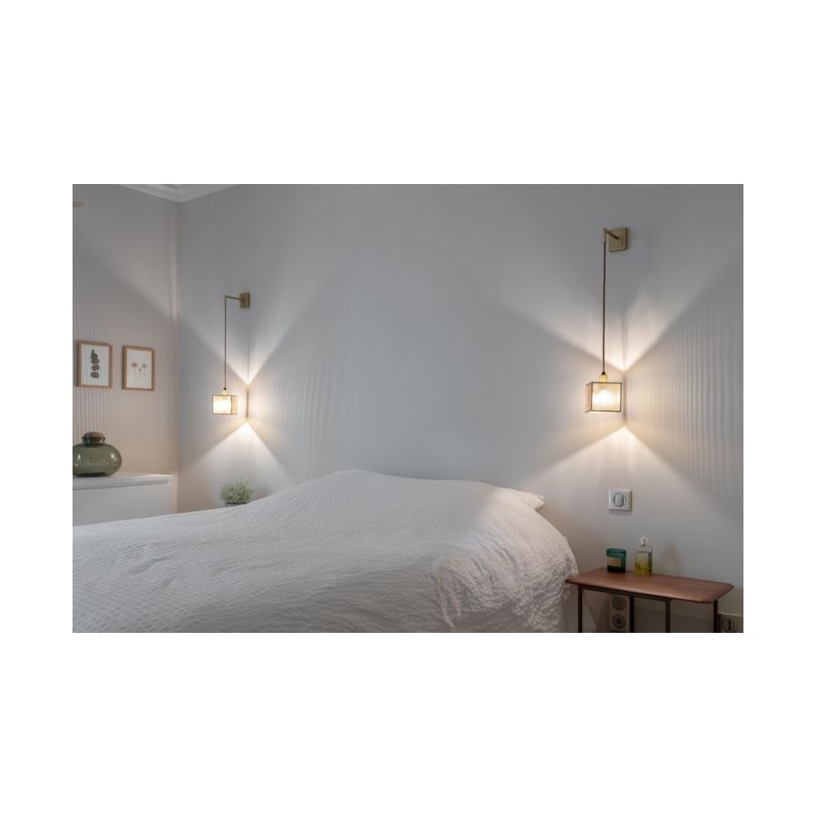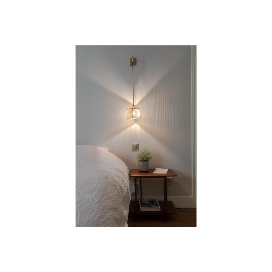 The pendant light transformed into wall light for the Sabin Collection comes in three sizes of shades, all made out of micro-perforated brass for a graphic light effect on your walls. Perfect for framing a bed headboard or to create a rhythmic pattern in a hallway when installed in a series.