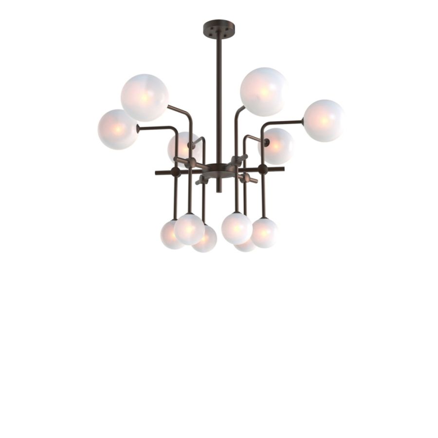 Composed of a brass structure in bronze finish and 12 glass diffuser spheres, this product will be able to make unique and highlight any type of hotel, restaurant or residence environment.