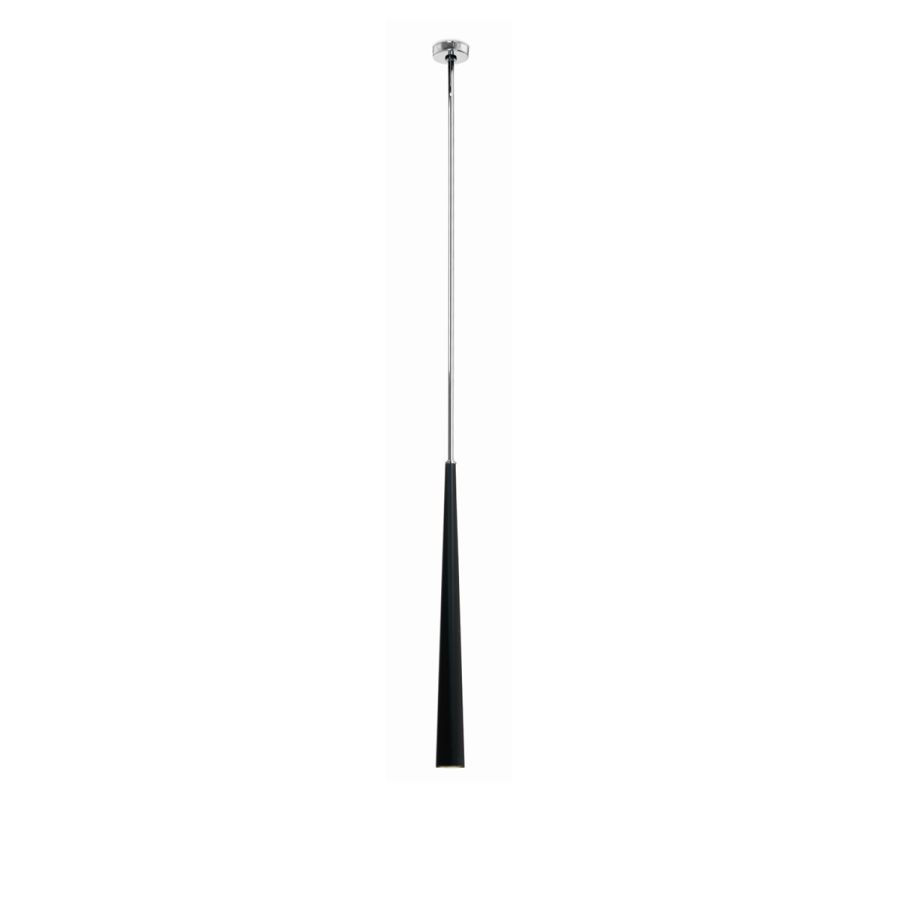 A vertical structure with an extremely elongated conical shape distinguishes this elegant ceiling lamp.