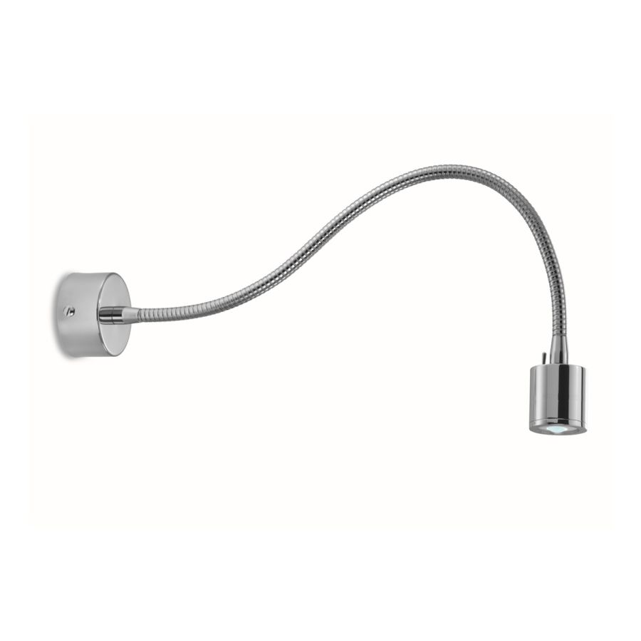 Direct light LED reading lamp, with flexible metal stem and round wall base.