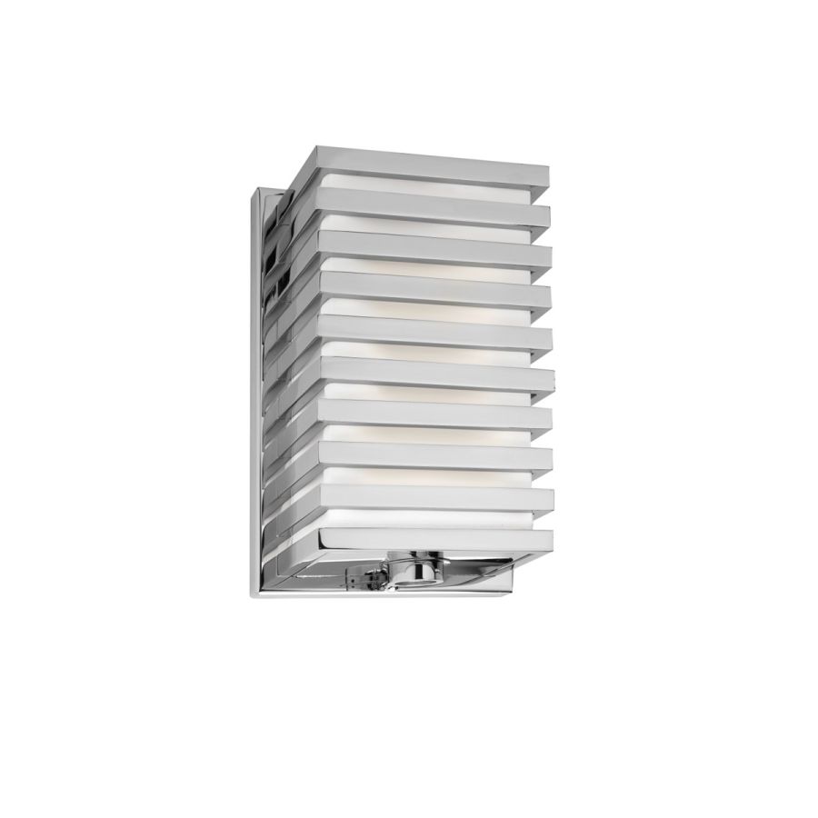 Distinguished by a rectangular metal structure in chrome finish and an internal fabric lampshade. Also available in polished nickel and bright light gold finish.