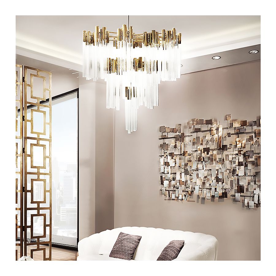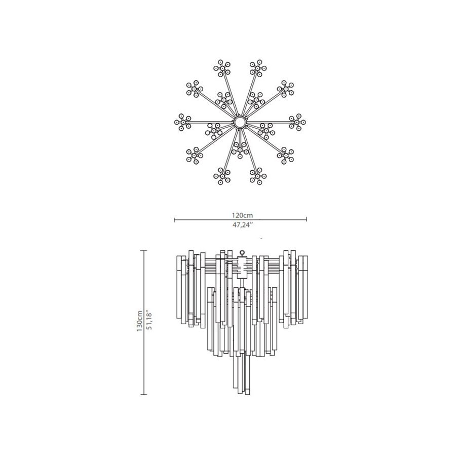 Burj chandelier is inspired by one of the most stunning hotels in the world, the Burj Al Arab. Like the hotel, this masterpiece is a symbol of modern age and luxury combined. It’s also a strong, decorative structure, fully made of gold plated brass, with a delicately handmade glass tubes.