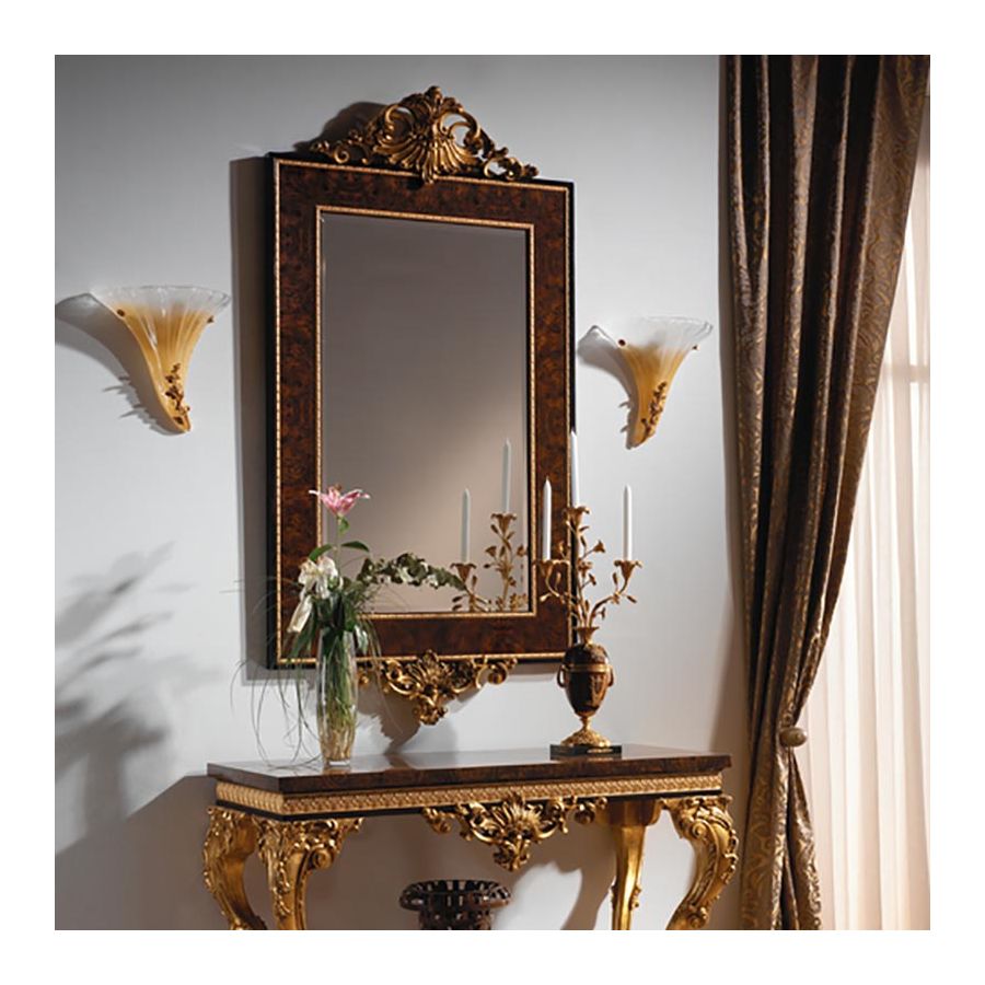 Kolekcja VOLGA jest wykonana z forniru orzechowego z elegancką dekoracją z drewna sykomorowego. Wyjątkowy jest brąz odlewany metodą piaskową z wykończeniem w odcieniu starego złota oraz rzeźbione drewno zdobione złoceniem w odcieniu starego złota.