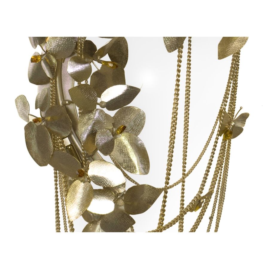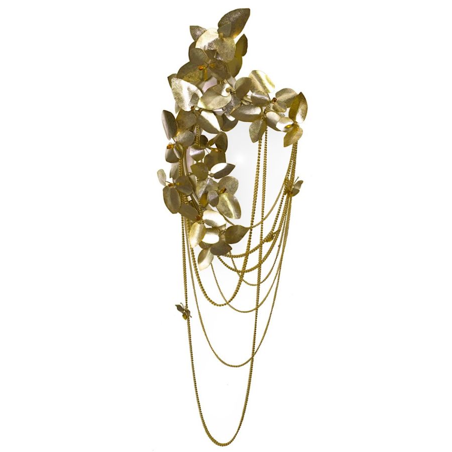 Gold-plated brass, handmade butterflies, and majestic flowers, ending with the touch of beautiful crystals, make the McQueen Wall Lamp a bold and feminine wall lighting solution. As its collection, this piece evokes a dramatic and eccentric sensation of beauty.