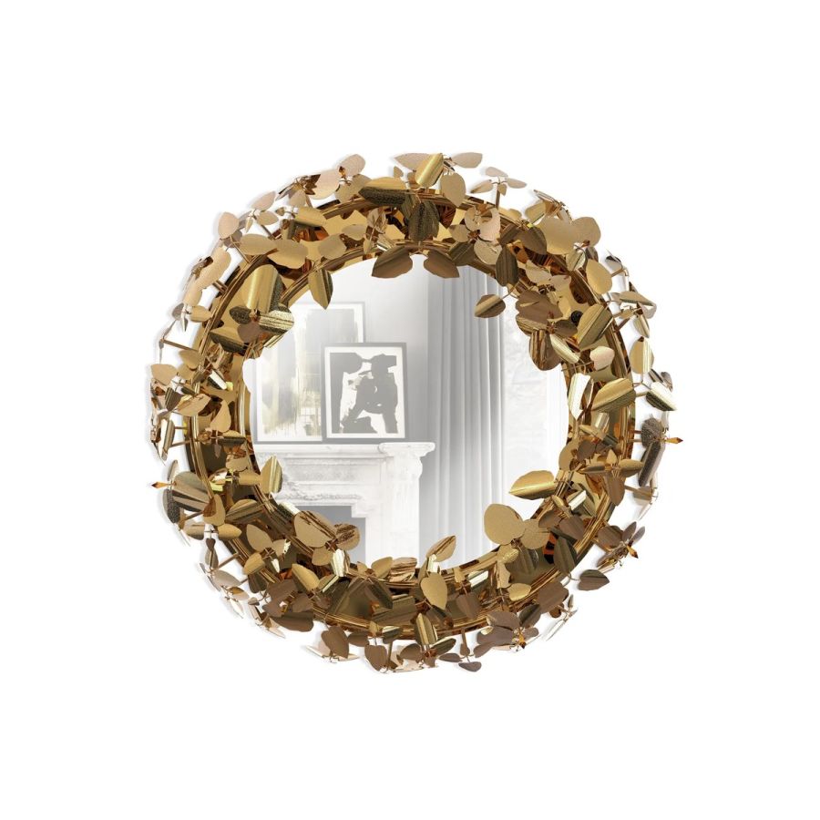 The McQueen Wall Light Mirror is a meticulously designed beauty object that embodies contemporary luxury while honoring the traditions of jewelry artisans. With its elegant and sublime presence, this mirror exudes savage beauty. The magnificent foliage is made from hammered brass, adorned with a gold-plated finish, and enhanced by the rhythmic luminosity of the crystals.