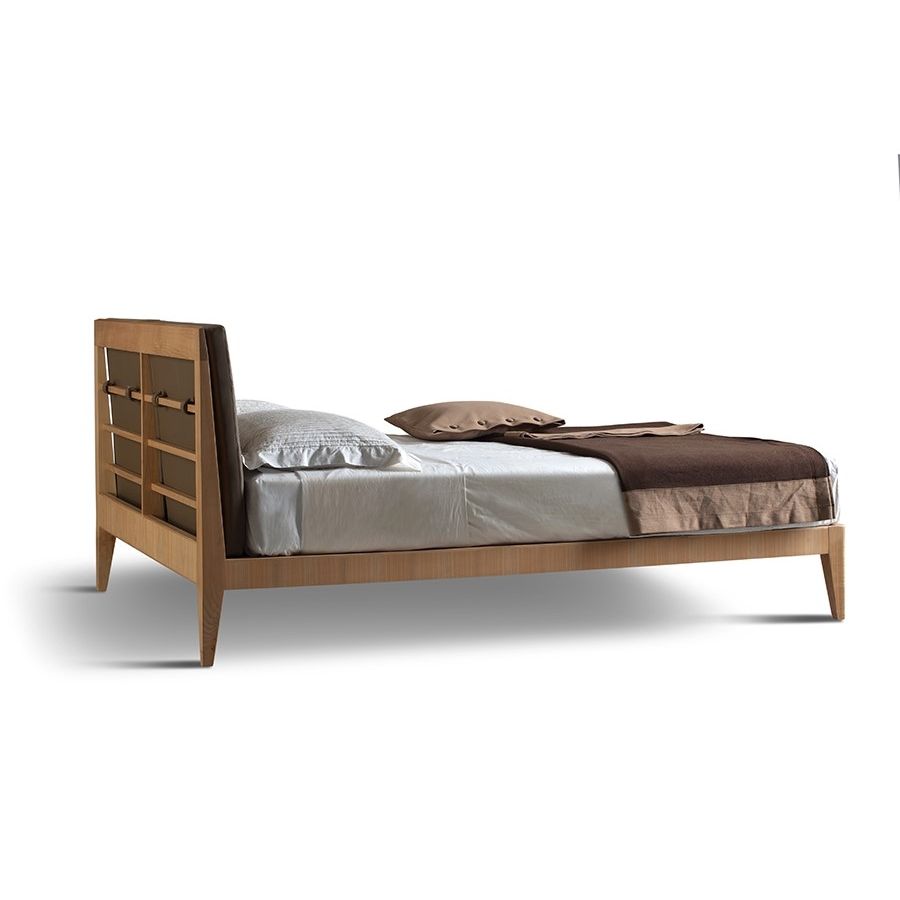 The Felice is an elegant and light bed. Its cherry frame with stiletto legs has been enriched with two big removable padded cushions pillows applied to the headboard, available in different fabric and leather colors.