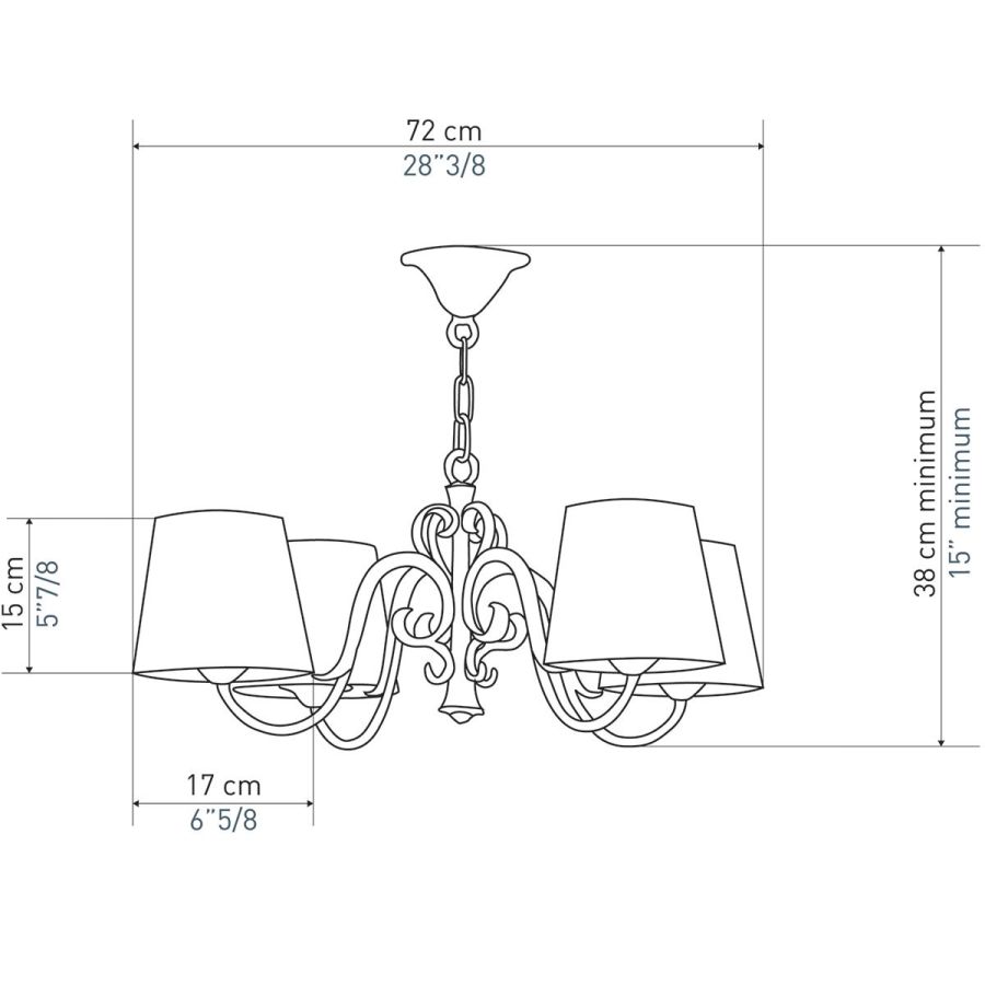 Width: 72 cm, Maximum: 4 x 100 w, Les Abat-jours peuvent être fabriqués dans 18 coloris au choix, The colour for the shades can be chosen out to 18 different hues
