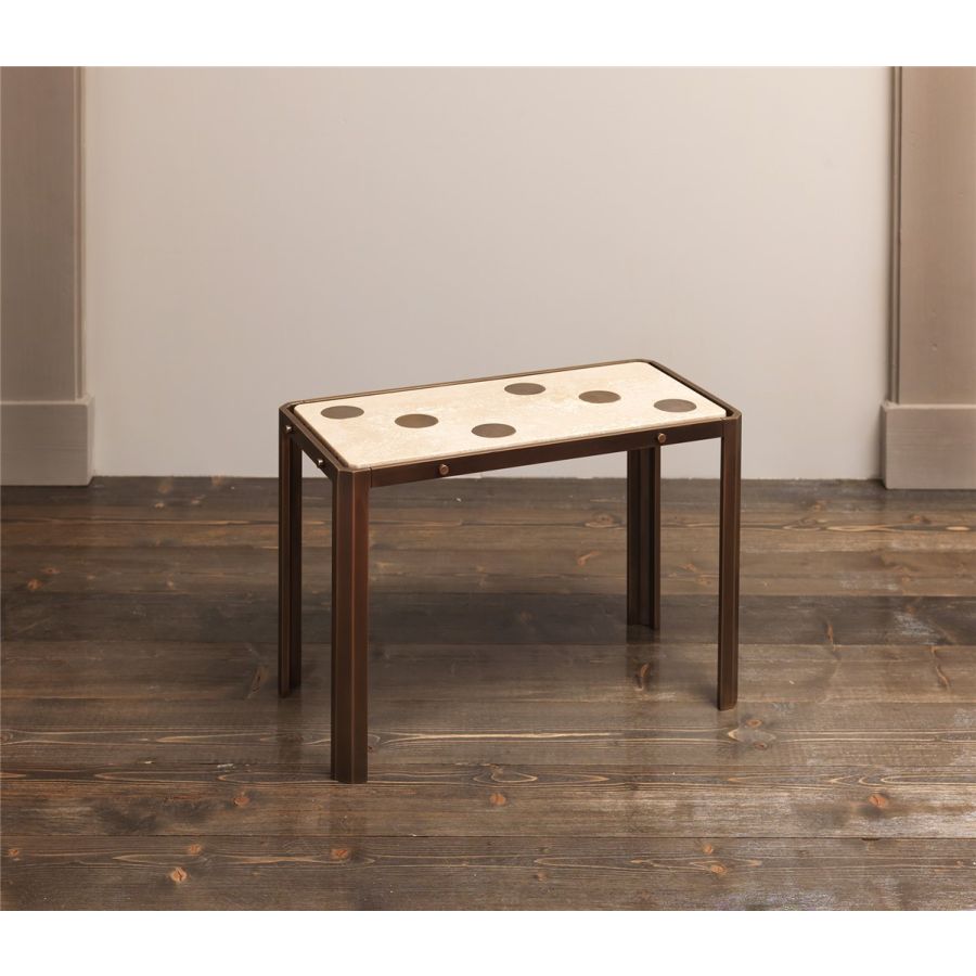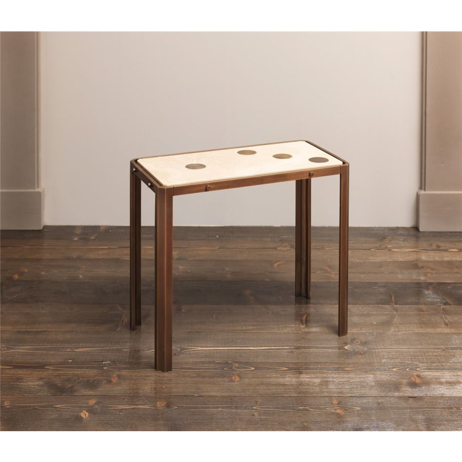 Coffèè tables in brass with Travertino marble or wood top, with brass dots decoration