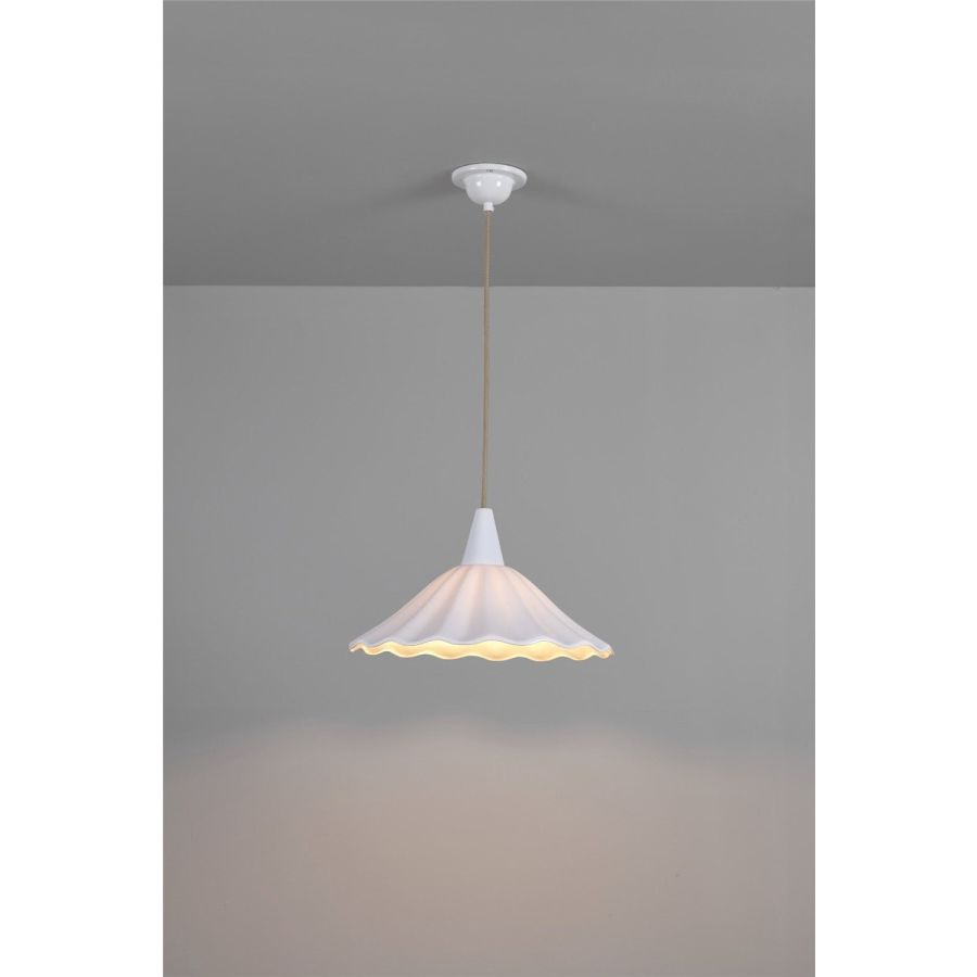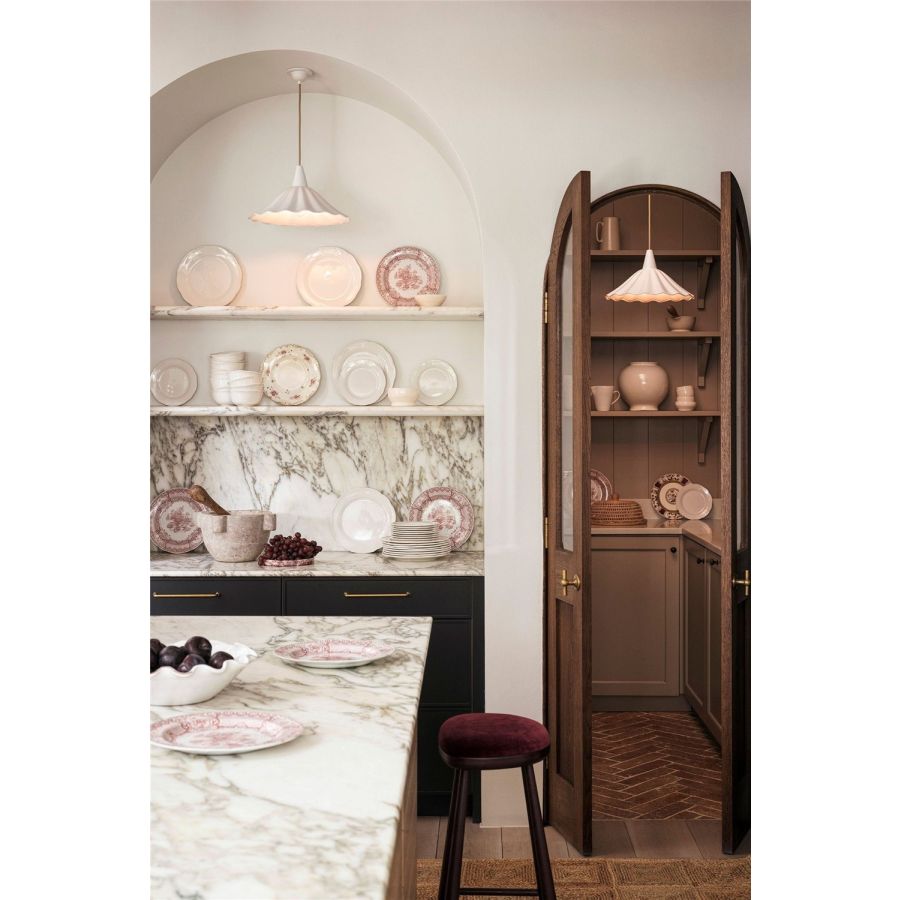 The Christie 36 Pendant represents an evolution of our beloved Christie pendant. Slightly reduced in diameter and with a steeper fall than the classic Christie shade, it casts a more focussed beam immediately below the fixture. Inspired by gently rolling ocean waves, the handmade bone china shade’s corrugated outline adds a playful focal point in any room.