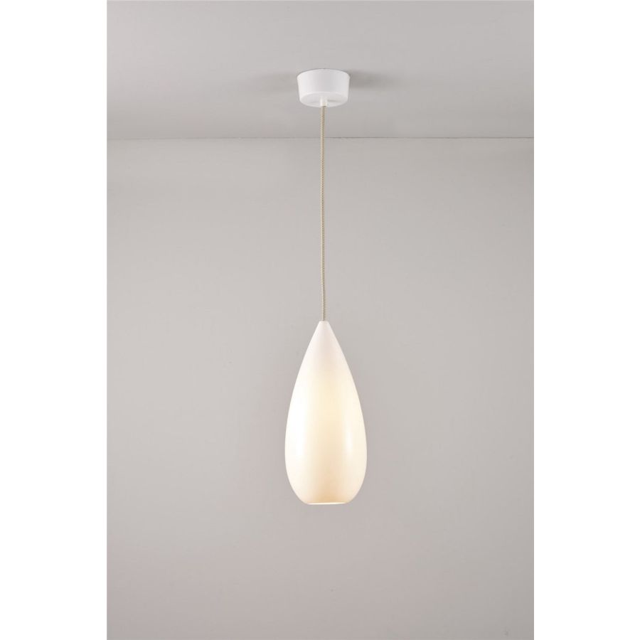 The Drop Zero Pendant has a modified longer shaped shade that provides a beautifully simple central lighting source. Handmade at our Stoke-on-Trent factory, the bone china shades are finished in a high-gloss glaze.