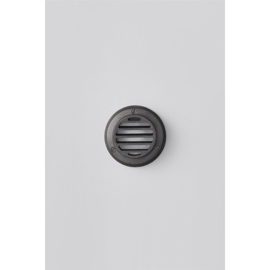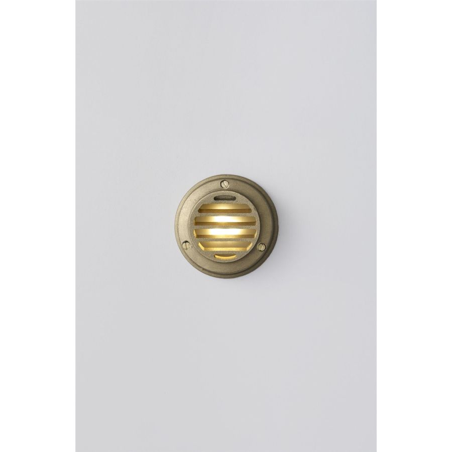 Low Voltage Step or Path Light for surface mounting, available in a sandblasted brass or weathered brass finish. Frosted glass diffuser. This product requires an additional low voltage halogen transformer to connect to a standard mains voltage circuit.