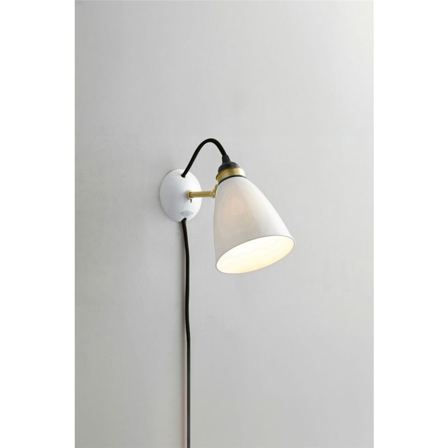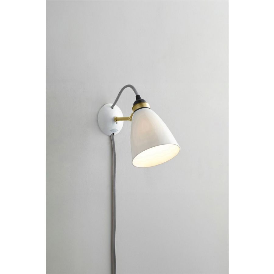 Our classic Hector updated for our 30th Anniversary with beautiful satin brass metal work that compliments the bone china wonderfully, adding a further touch of warmth to the Hector range. This is a practical, space-saving wall light that offers a subtle source of ambient light adding a warm inviting feel to the room.