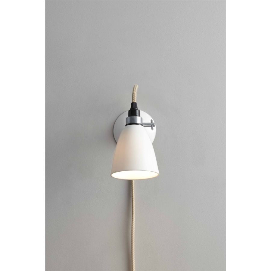 A British design classic in translucent bone china. The Hector Dome Wall Light features a smart cotton braided flex and moveable shade, which offers a source of ambient light. This truly is a practical, space-saving light fixture.