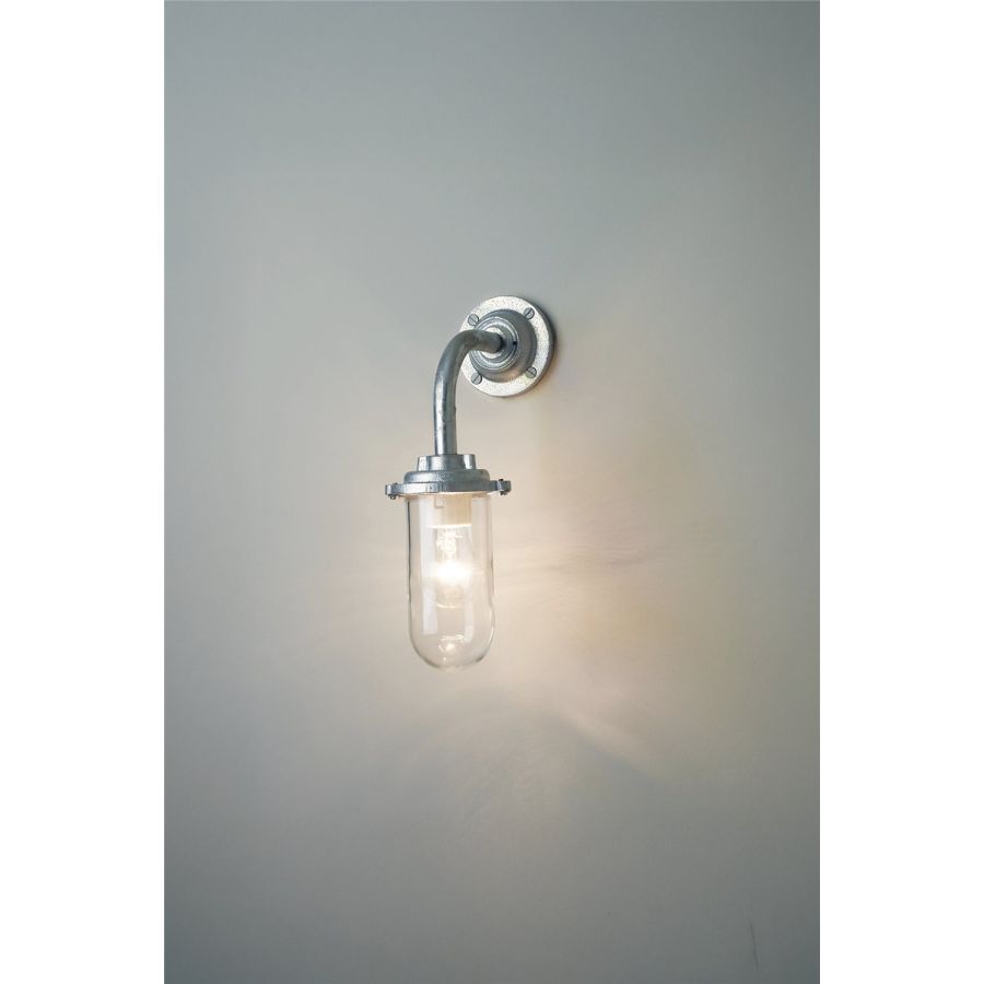 Davey's Bracket Light with right angle arm and round base is a traditional marine inspired fixture. Skillfully cast at our Birmingham metalworks and rated IP54, this is the perfect outdoor wall light. Available in galvanised or black. Galvanised guard sold separately. N.B. This product is galvanised underneath so the paint finish will not be completely smooth.
