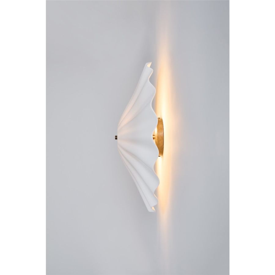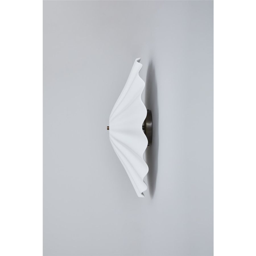 Playful and refined at once, the striking Christie Wall Light is an eye-catching choice for any space. Its handmade bone china shade, gently corrugated and inspired by the rolling waves of the sea, creates harmoniously distributed illumination. When the bulbs are on, the shade itself glows beautifully, adding a touch of drama.