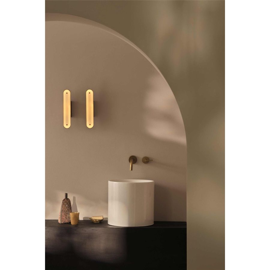 With a sculptural form inspired by sailing cleats, the Cleat wall light pairs industrial precision with subtle nautical references. Its cast bronze body houses a dimmable LED light source, producing a soft, halo-like glow on a low setting and bright, functional light when turned up fully. Thanks to its IP44-rating, Cleat is an elegant choice for bathrooms, adding depth and character to walls even when unlit.