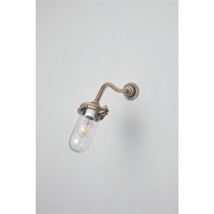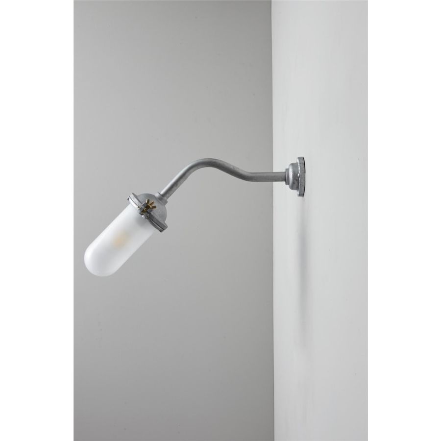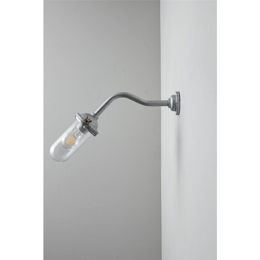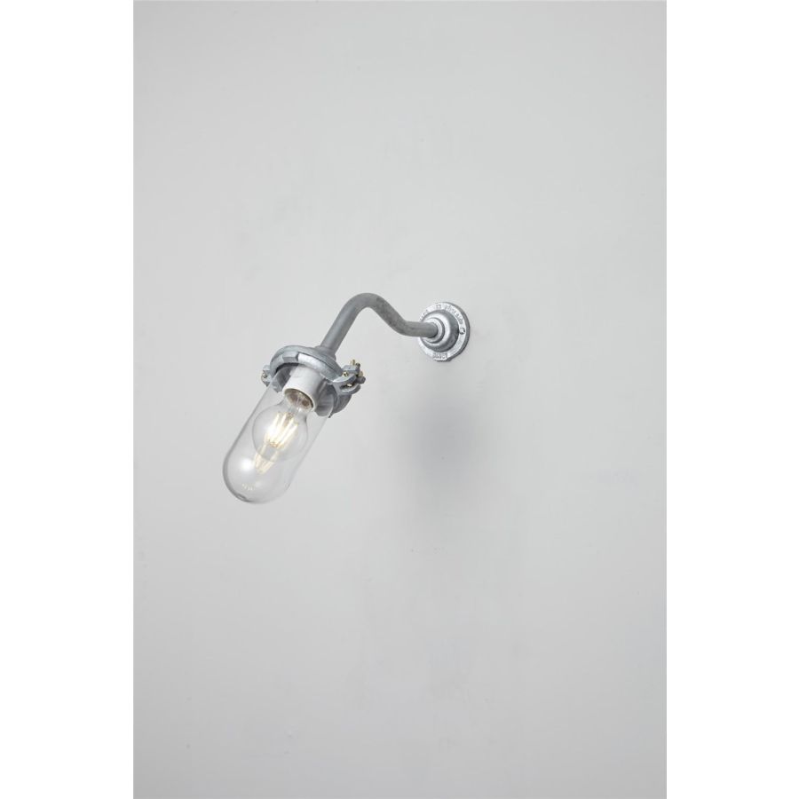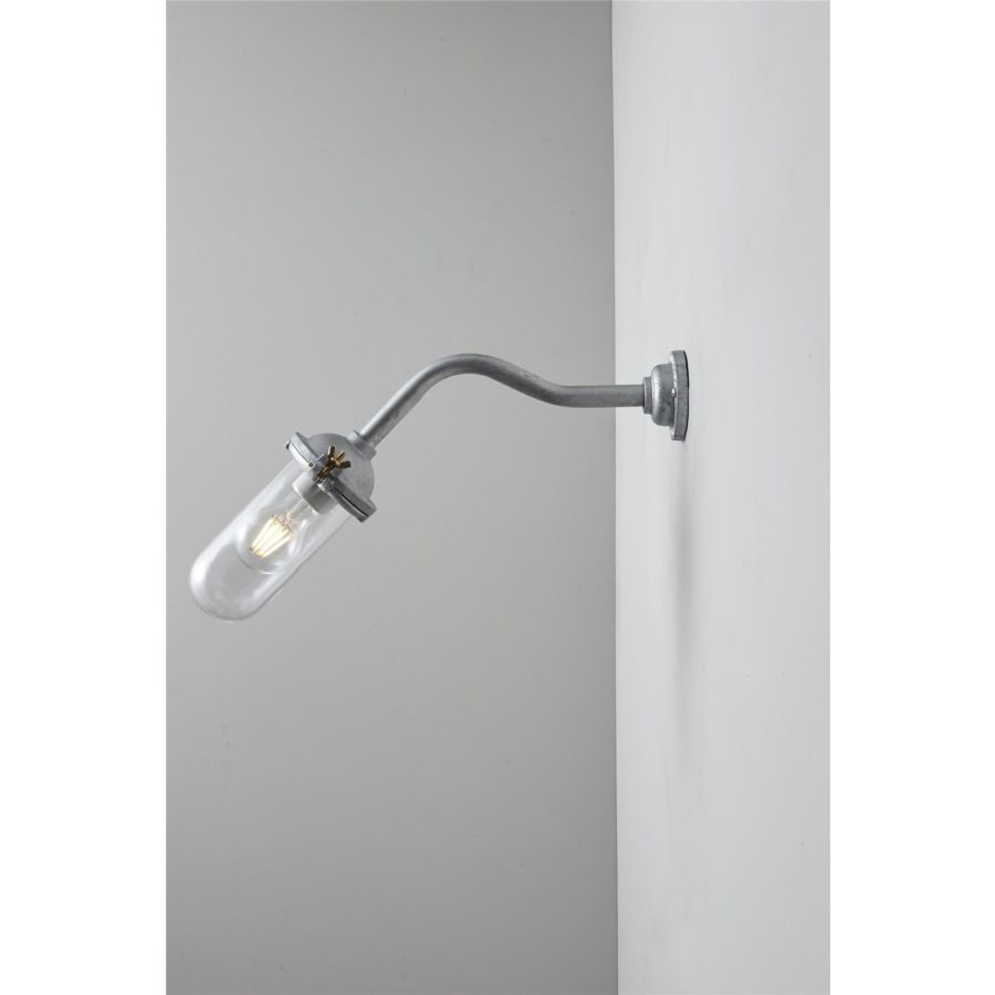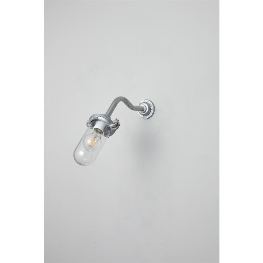 An Exterior Bracket Light with a simple ring that holds the clear or frosted glass fitting. This beautifully simple wall light is available in either galvanised cast iron or sandblasted bronze, and with a canted or right angle arm.