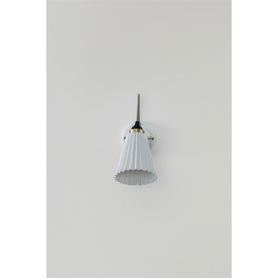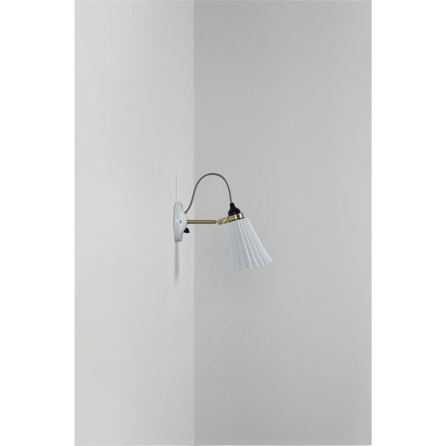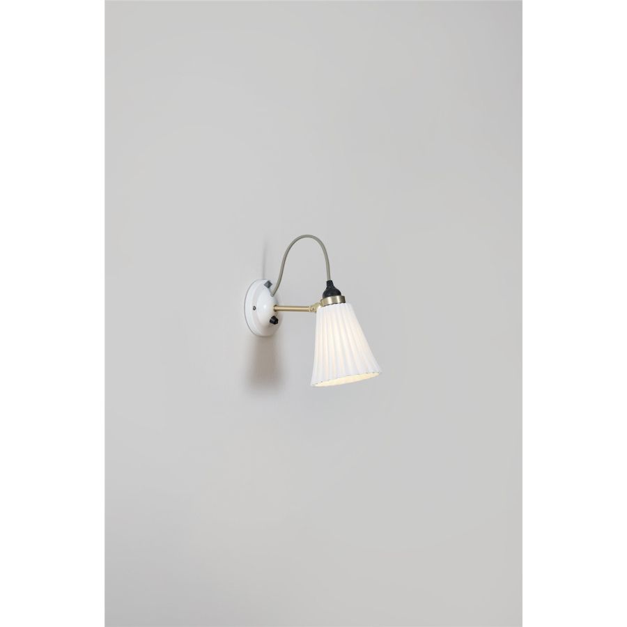 The handmade Hector Pleat Medium Wall Light beautifully marries fine bone china with satin brass accents. Its iconic pleated shade exudes elegance, while the glossy bone china finish is gracefully complemented by the satin brass detailing. With its adjustable clamp, you can direct the light precisely where it's desired. The design is enhanced by our signature cotton braided cable in a calm grey hue.