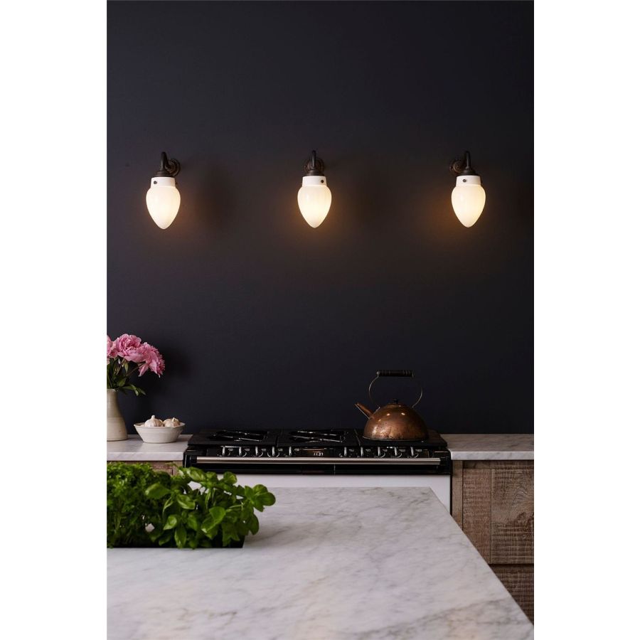 The Pine Wall Light is an elegant IP rated light, suitable for most settings. Opal glass has been hand blown in our own glass factory, to create a classic and enduring shape. The combination of opal glass with ceramic and weathered brass fittings, is a cutting edge design of premium quality.